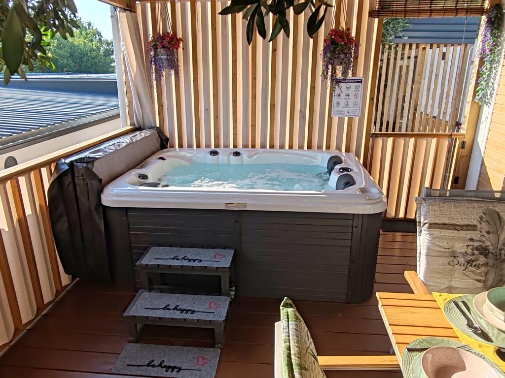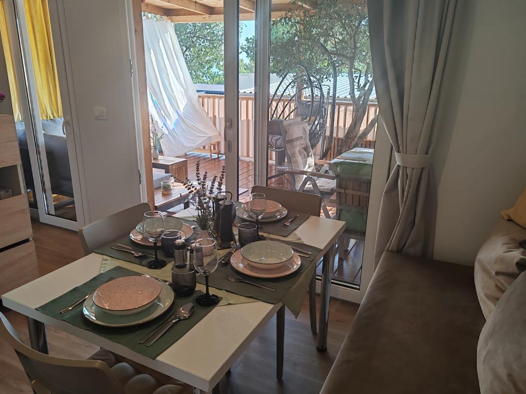 Una casa móvil moderna y totalmente equipada, ubicada en un excelente camping con una amplia gama de servicios, ideal para familias con niños. La casa, de 32 m², cuenta con dos dormitorios, una sala de estar y una cocina totalmente equipada con lavavajillas, microondas, tostadora, cafetera Dolce Gusto y hervidor de agua. Dispone de dos baños con ducha. Un dormitorio tiene una cama doble de 140 × 200 cm y baño privado. El segundo dormitorio tiene dos camas individuales de 90 × 200 cm. En la sala de estar hay un sofá cama doble. La terraza, de 29 m², cuenta con jacuzzi climatizado con hidromasaje y zona de estar. La casa está completamente equipada con todo lo necesario (ropa de cama, toallas, artículos de aseo, etc.). Dispone de barbacoa de gas exterior. Hay un complejo de piscinas a solo 100 m y una playa a unos 250 m. El centro de Selc está a solo 13 minutos a pie. El establecimiento ofrece aparcamiento privado e internet sin coste adicional, además de televisión inteligente.