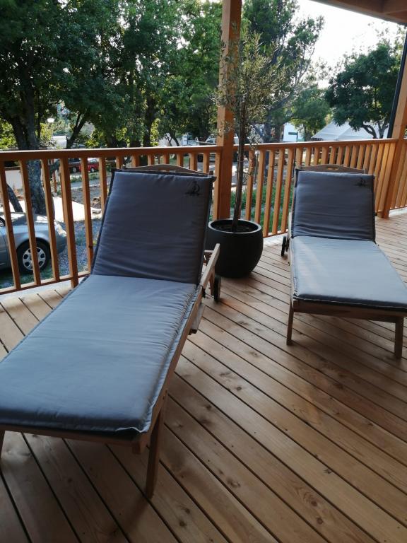 ¿Te apetece algo diferente? ¿Quieres relajarte en un entorno de naturaleza y paz? En algún lugar entre el cielo y el mar se encuentra nuestra nueva casa móvil. Más precisamente, está ubicado en el campamento Elements en una zona tranquila de Selc y es ideal para las vacaciones de todos. En una amplia parcela en las inmediaciones del mar, ¡120 metros para ser exactos! En el silencio de la naturaleza virgen, hemos colocado la casa de manera que parezca un escenario hacia el hermoso mar, el sol y la isla de Krk. La casa está rodeada de naturaleza. Comienza el día en la terraza con el sonido de los grillos y el olor del mar. En 45 m2 hay una mesa de comedor, un sofá rinconero para descansar y dos cómodas tumbonas. Hay una barbacoa a su disposición al lado de la terraza. El interior de la casa lo ofrece todo, por lo que no te faltará confort y relax al estilo mediterráneo. Dos dormitorios, baños, cocina totalmente equipada, aire acondicionado, Internet, TV. ¡Ideal para hasta 6 personas! Cierra los ojos e imagina... que estás en un hermoso lugar rodeado por las brillantes aguas del Adriático. Date un festín con nosotros y descansa tu alma y tu cuerpo.
