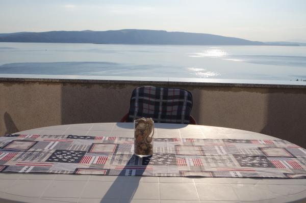 App se encuentra a 200 metros del mar en una tranquila Senja ofrece una vista impresionante de las islas de Kvarner; Krk, Cres Primera. Aire acondicionado con garantía de internet inalámbrico, TV y aparcamiento gratuito. La cocina está equipada con utensilios estándar, microondas, nevera con congelador y un hervidor de agua y cafetera. La tienda es 200 m, centro 800m.