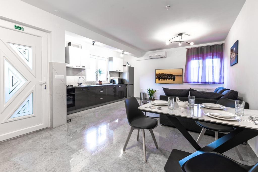 Le ofrecemos tres apartamentos de 4 estrellas, magníficamente equipados y recién amueblados, en un tranquilo barrio familiar de Šibenik, ideal para familias y huéspedes que desean un entorno tranquilo y seguro donde puedan relajarse sabiendo que ellos y su propiedad están a salvo. En el lugar, ponemos a su disposición nuestro aparcamiento privado gratuito, que está justo detrás del edificio, oculto a la vista de la calle y que puede ver desde el apartamento. El apartamento se encuentra a 20 minutos a pie del casco antiguo de Šibenik y en las inmediaciones de todos los servicios de la ciudad. El mar está a 500 metros y las playas más cercanas están a solo 5 minutos en coche. Cada apartamento está completamente amueblado y equipado con todas las comodidades, y cada uno tiene acceso a una terraza, un balcón y un horno al aire libre para asar y hornear.