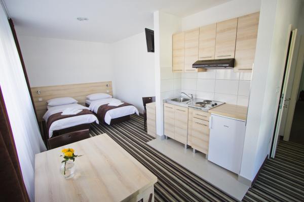 Tasa turistica no está incluida en el precio.Todas las habitaciones están equipadas con TV y TV por cable, Wi-Fi y su propio aire acondicionado. Hay estacionamiento disponible en frente del edificio y está incluido en el precio. El precio incluye la limpieza de la habitación una vez a la semana. También se proporcionan toallas.