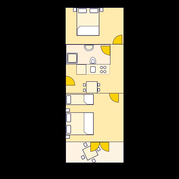 Apartamento para cuatro personas y una cama supletoria (60 m2)