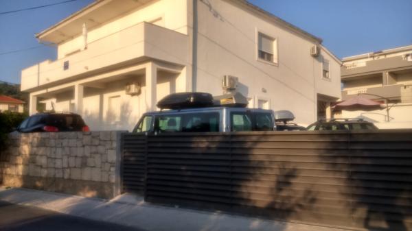 Los apartamentos están en una casa familiar en primera fila al mar, dos apartamentos en la planta baja y uno arriba. Los apartamentos son grandes, equipados con todo lo que haría que sus vacaciones sean más hermosas y agradables. Tienen dos grandes estacionamientos, una gran terraza cubierta, una terraza con vista al mar y un balcón con una hermosa vista de Split y el mar. Los apartamentos cuentan con aire acondicionado, televisión, internet, lavadora, lavaplatos, toallas y ropa extra de pago. A diez minutos a pie de la casa hay una tienda, panadería, restaurante, muelle que va a Split y Trogir. Los apartamentos de la planta baja tienen una rampa para discapacitados, ducha al aire libre y barbacoa, la playa está a cinco metros al otro lado de la carretera.