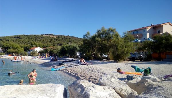 Los apartamentos están situados muy cerca de la playa, a solo 10 metros, con una preciosa vista al mar. Muy limpios y equipados con todo lo necesario. La propietaria es muy amable, atenta y cuida de sus huéspedes. La playa está acondicionada con guijarros finos y ducha exterior. El alojamiento está en una zona tranquila. Sin embargo, está cerca de bares, restaurantes y un parque acuático. Cerca de excursiones a Trogir y Split. Se puede llegar en transporte público y ferry.