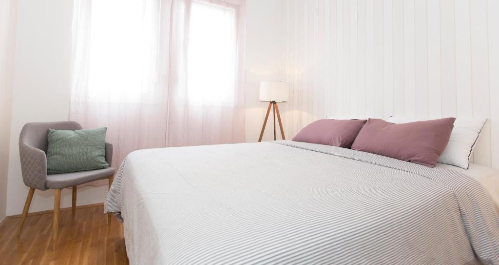 Apartamento moderno con salón y comedor, cocina, dos dormitorios, baño y aseo. Hay una cama doble en cada habitación. El apartamento está ubicado en una zona tranquila de Znjan, a 5 minutos a pie de la playa. El apartamento tiene dos aires acondicionados, acceso a internet y un estacionamiento al aire libre.