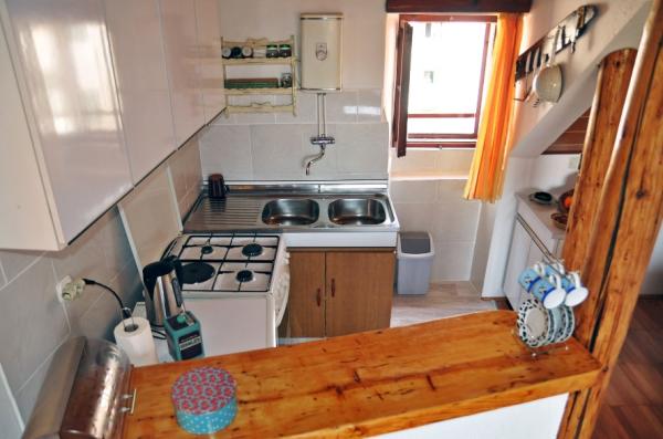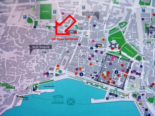 Antigua Casa de Piedra se encuentra en el corazón de Split, en la parte de la ciudad llamada Vela Varos. La ciudad está llena de casas de piedra decorados con flores y pequeñas calles estrechas (calles) característico de Dalmacia. El apartamento se encuentra a 650 m del centro del palacio Diklecijanove, a 400 metros de la línea de costa. Un paseo de 15 minutos a pie se llega a la colina Marjan, en cuyas orillas se puede nadar y relajarse en la sombra de los pinos. La playa de arena de Bačvice, se encuentra a unos 1300 m de la casa (15 minutos a pie). Muy cerca están Peskarija (mercado de pescado fresco) y el mercado (mercado de frutas y verduras frescas). El apartamento está situado en tres plantas. En la planta baja hay un patio con barbacoa, que está destinado sólo para los huéspedes que están usando actualmente el apartamento. En el primer piso hay una terraza, dos dormitorios y un baño. En el segundo piso se encuentra la sala de estar con cocina y comedor. La cocina tiene una nevera, horno, microondas, hervidor eléctrico, toallas, servilletas ... en el baño son jabón, champú, adaptador de corriente, el cabello, las bolsas de higiene ...
