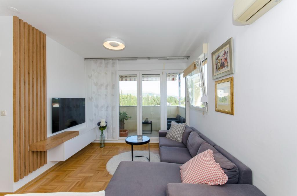 Apartamentos modernos y totalmente equipados, ubicados en edificios residenciales de nueva construcción en una zona tranquila de Split. Los apartamentos 4+1 y 5+0 se encuentran en el barrio de Pazdigrad, en Put Duilova 4a. El apartamento 2+2 se encuentra a la entrada de Split, en Sirobuja, Stobrečka 26. El apartamento (4+1) consta de dos dormitorios, baño con aseo, cocina con comedor, salón y terraza con preciosas vistas. Un dormitorio cuenta con una cama doble de 160 × 200 cm y el segundo dormitorio con una cama doble de 140 × 200 cm. El salón cuenta con un sofá cama. El apartamento (5+0) consta de tres dormitorios, baño con aseo, cocina con comedor, salón y una amplia terraza con vistas al mar. En una habitación hay una cama doble de 160×200, en la segunda una cama doble de 140×200 y en la tercera una cama individual de 90×200. En el sótano del edificio hay garajes conectados a los apartamentos mediante ascensor. Los apartamentos disponen de TV, aire acondicionado e internet gratuito. Bienvenidos.