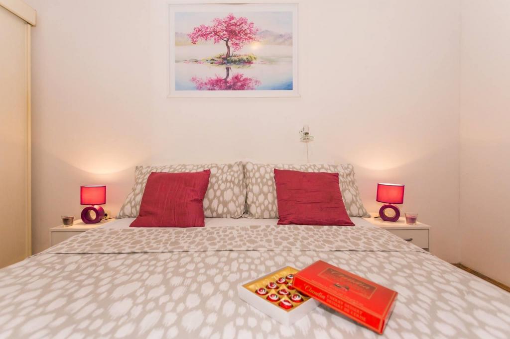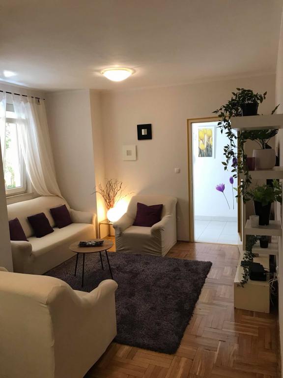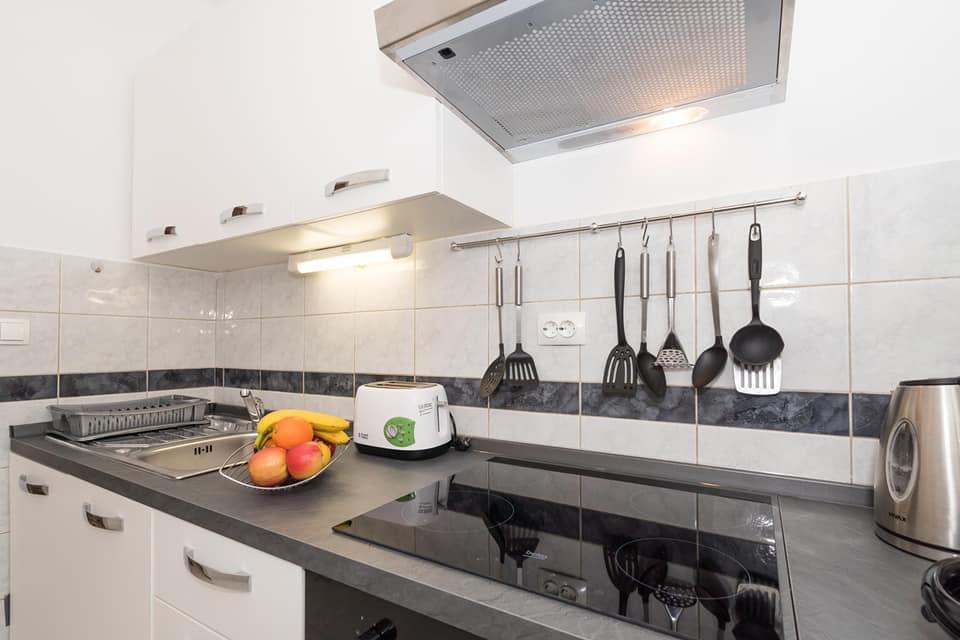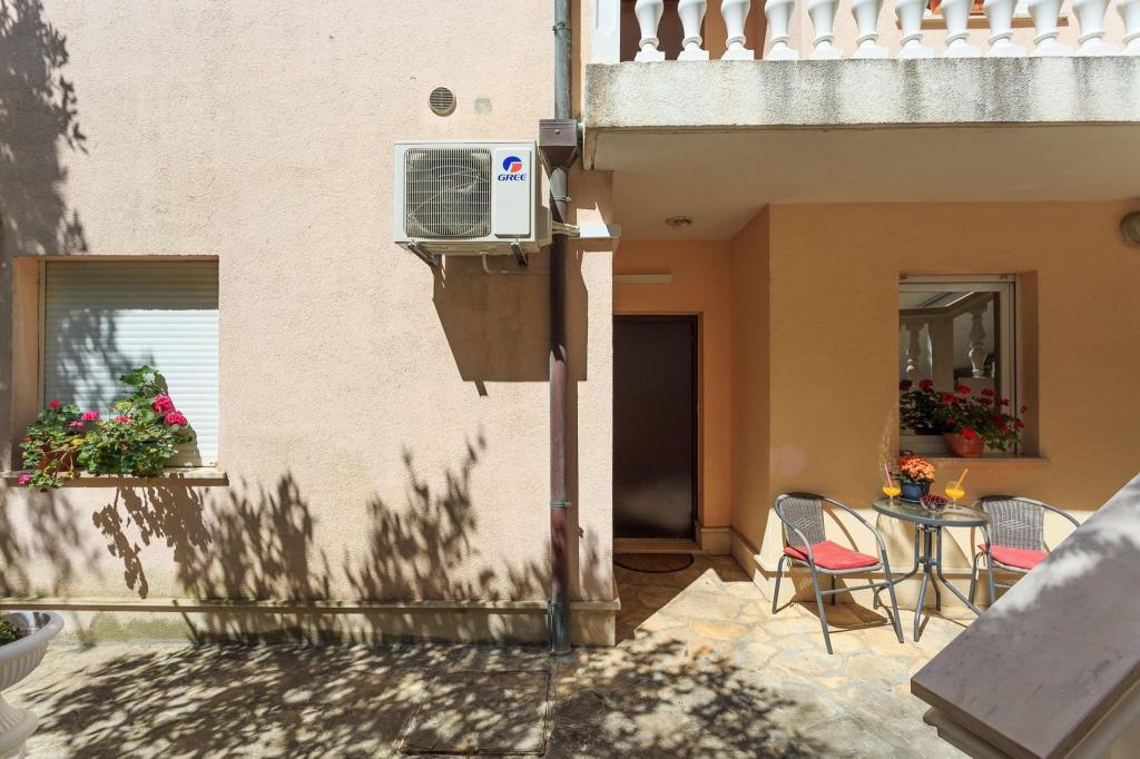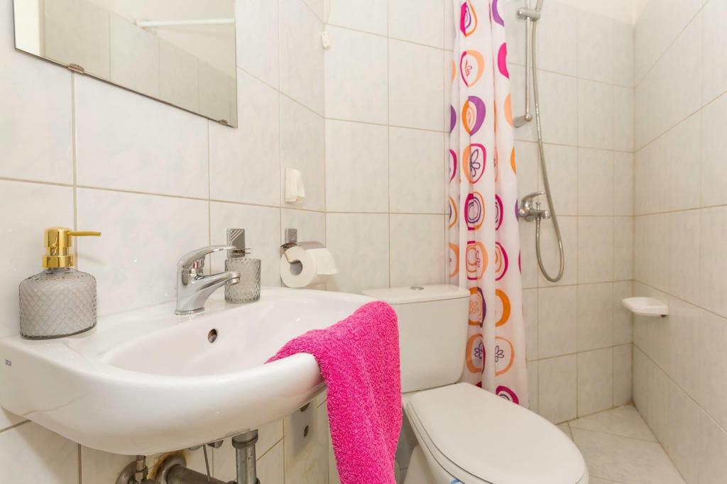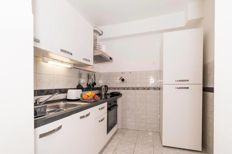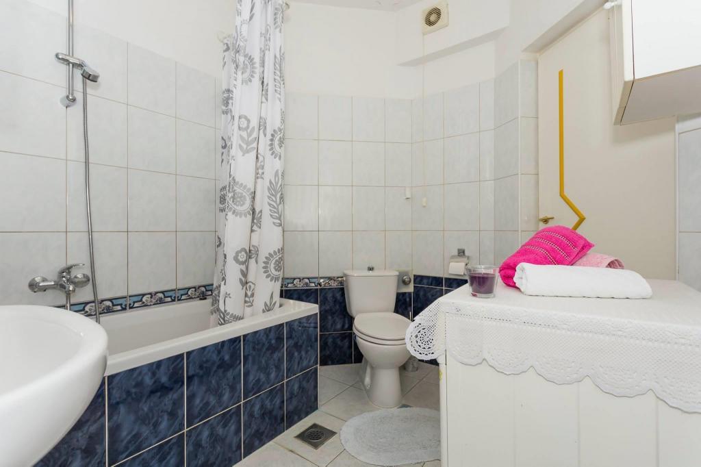 El apartamento está ubicado en la primera fila al mar en un edificio nuevo. El apartamento consta de dos amplios dormitorios con camas dobles, dos baños, cocina, comedor, sala de estar y terraza. El apartamento se encuentra a 200 metros de la primera playa de guijarros ya 300 metros de la playa de arena. La distancia a la primera cafetería y restaurante es inferior a 100 metros, cafetería Renato, Tennis bar y Mythos, restaurante Velo Misto y Barkarola. La distancia al centro de la ciudad es de unos 20 minutos a pie. A una distancia de 100 metros hay pistas de tenis en alquiler.
