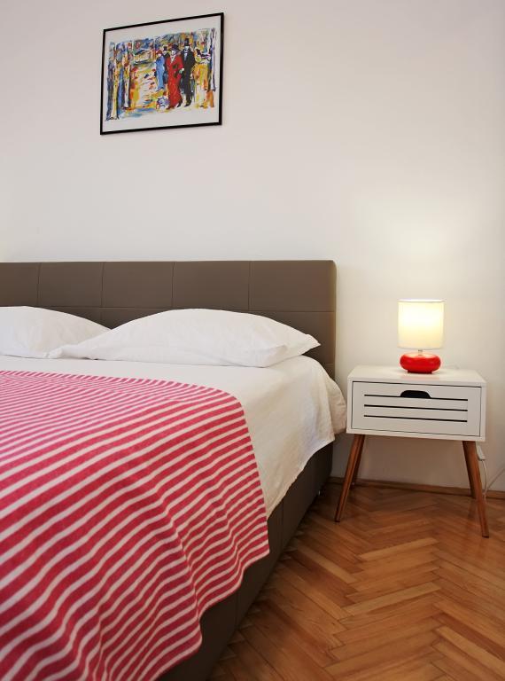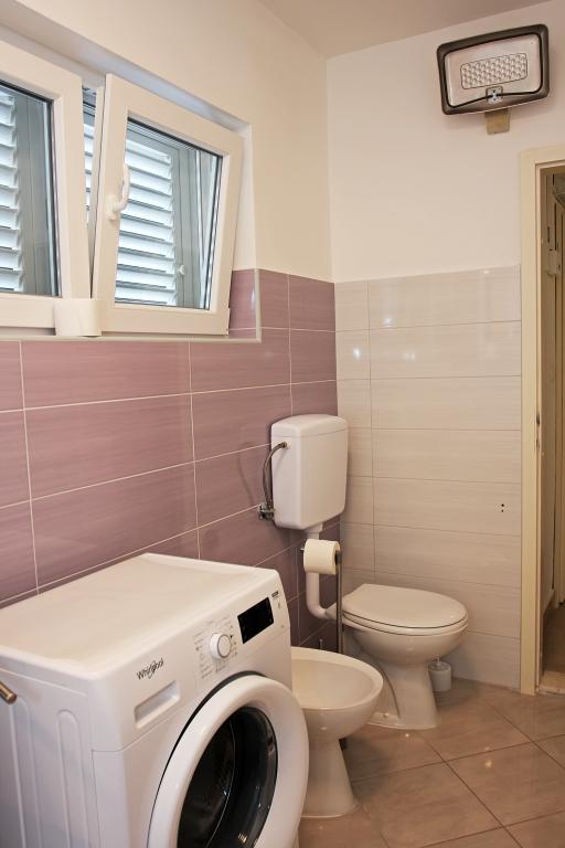 Apartamento de nueva construcción de tres habitaciones en la planta baja, primera fila al mar. El apartamento consta de una cocina con comedor y sala de estar, tres dormitorios, dos baños con inodoros, otro baño separado, también tiene una gran terraza y otro balcón. Dos habitaciones tienen camas dobles y una tiene dos camas separadas. En la sala hay un sofá de tres plazas que se extiende en una cama para dos personas. La cocina está equipada con lavavajillas, microondas, horno, heladera con freezer. Un baño tiene una lavadora. Hay dos plazas de aparcamiento en el patio, y los huéspedes tienen instalaciones para barbacoa. La playa se encuentra justo en frente de la casa.