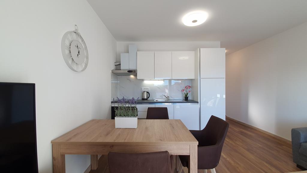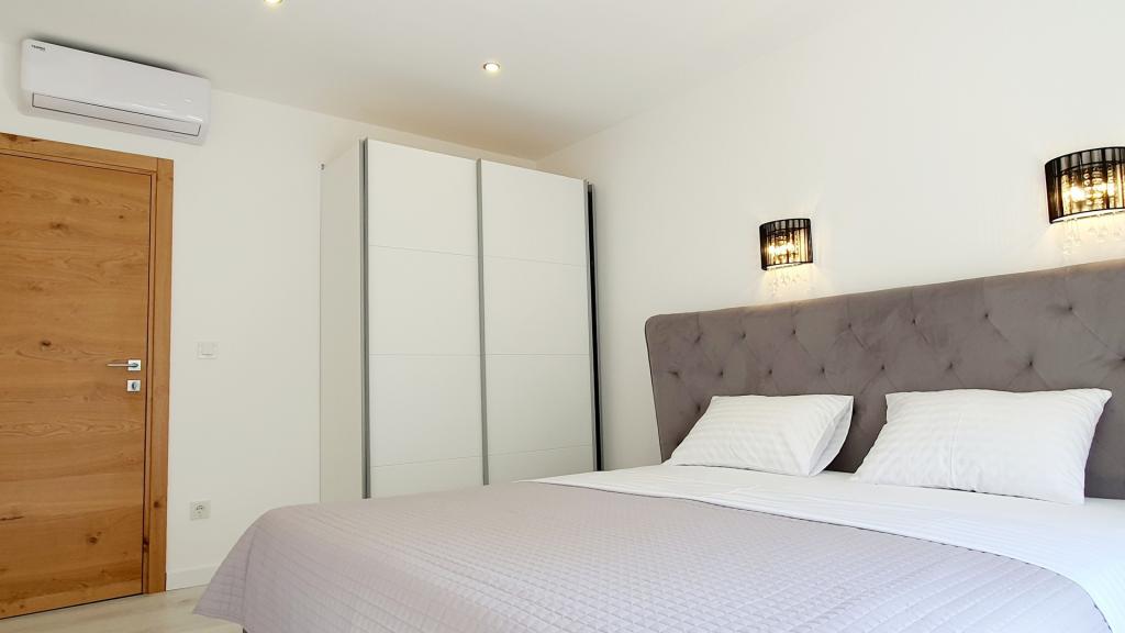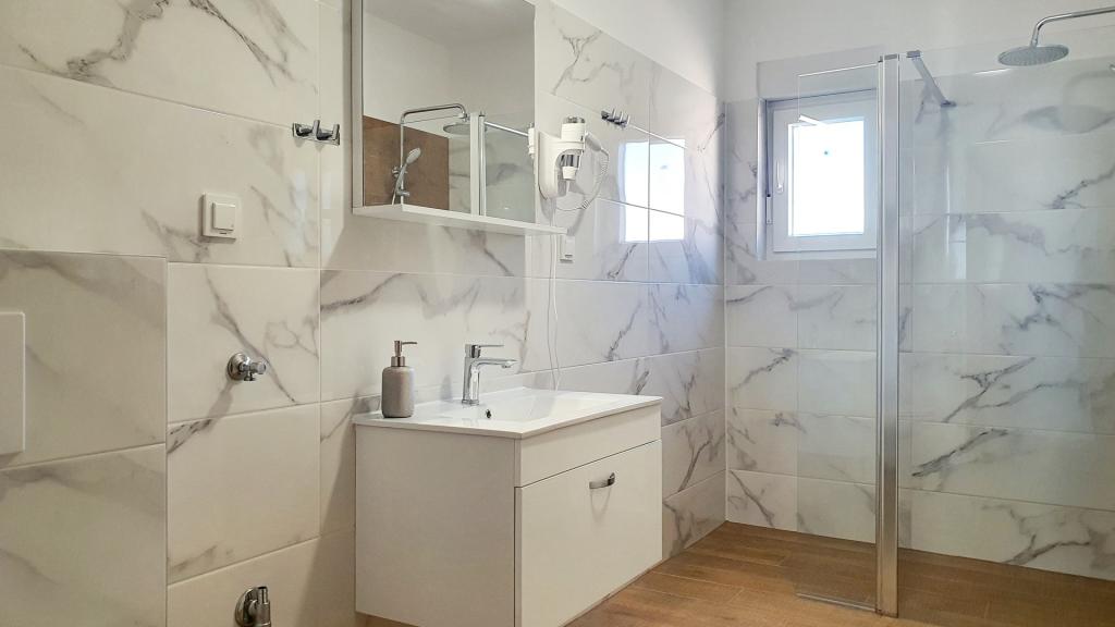 Apartvilla OKIT es una casa de nueva construcción con piscina exterior y jardín vallado. La casa está ubicada en Vodice, a solo 150 m de la playa. Consta de 4 apartamentos independientes, uno en la planta baja apartamento de 4 dormitorios, en el 1er piso apartamento de 3 dormitorios y en el 2º piso 2 apartamentos de 2 dormitorios. Apartamento OKIT 1 de (130m2) ubicado en la planta baja, consta de 4 dormitorios, 2 baños y cocina, comedor y sala de estar en una unidad con acceso a una terraza cubierta y un patio con piscina con zona de estar y barbacoa. 3 habitaciones dobles, 1 habitación doble,. La cocina está equipada con todos los accesorios necesarios para guardar y servir alimentos y bebidas, lavavajillas, horno, frigorífico y congelador y lavadora. El apartamento tiene aire acondicionado, tiene acceso a internet y plaza de aparcamiento en el patio, alojamiento ideal para 8 personas.