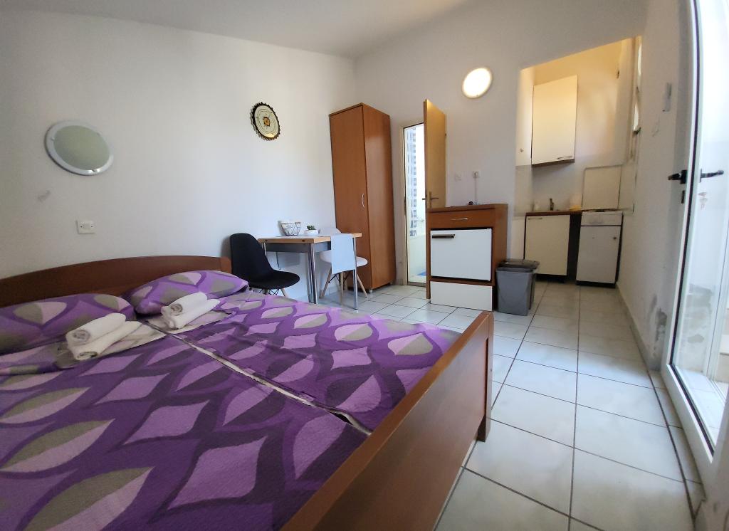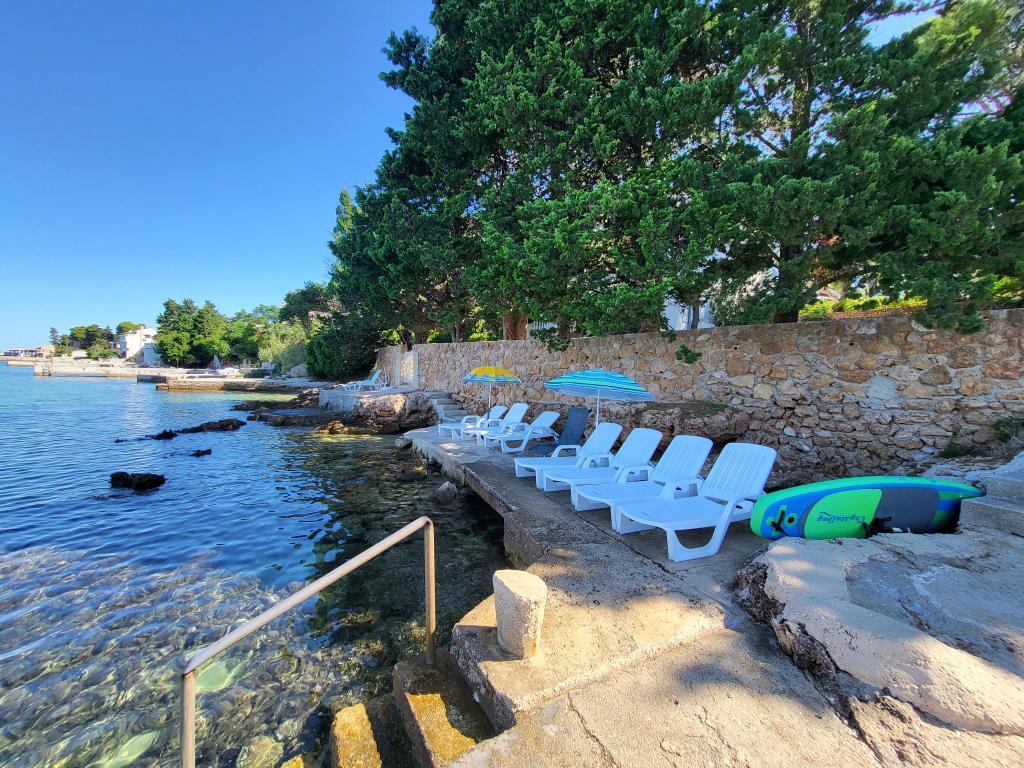 Apartamentos totalmente equipados, internet, TV, aire acondicionado, barbacoa y terraza. Distancia a la plataforma de hormigón con tumbonas: 30 m, distancia a la playa pequeña de arena: 30 m, distancia a la playa grande de arena: 200 m.