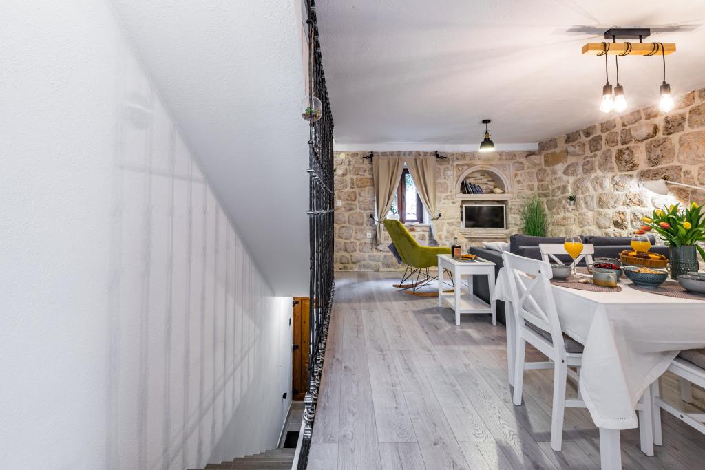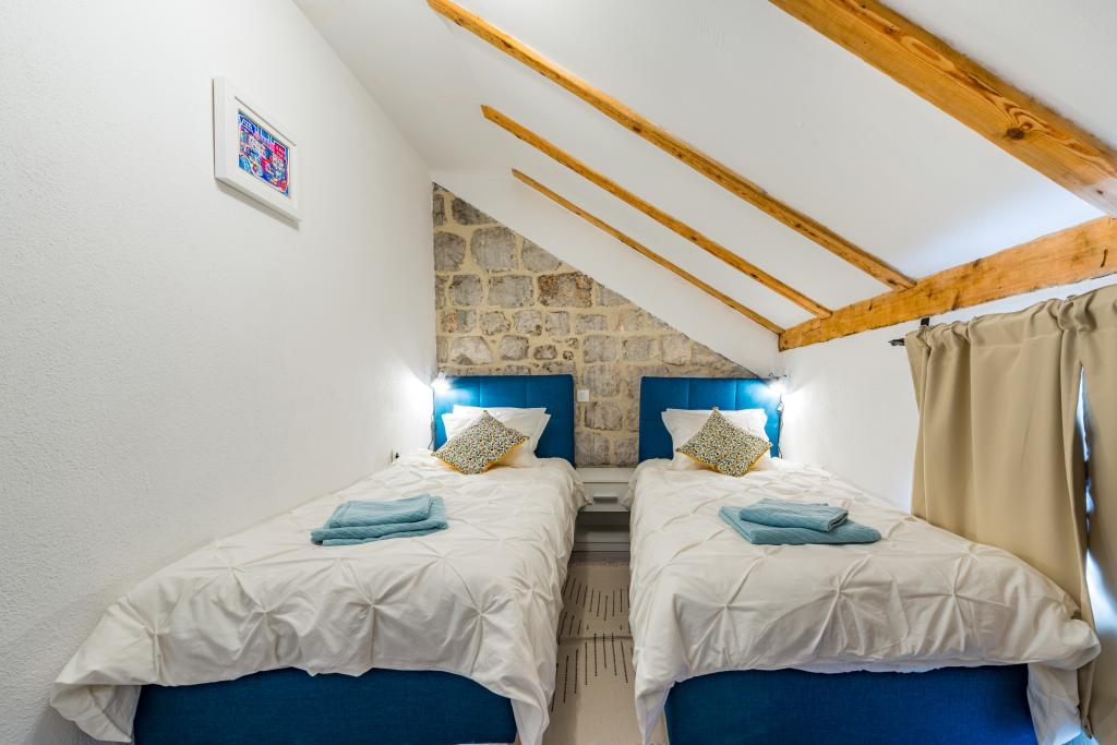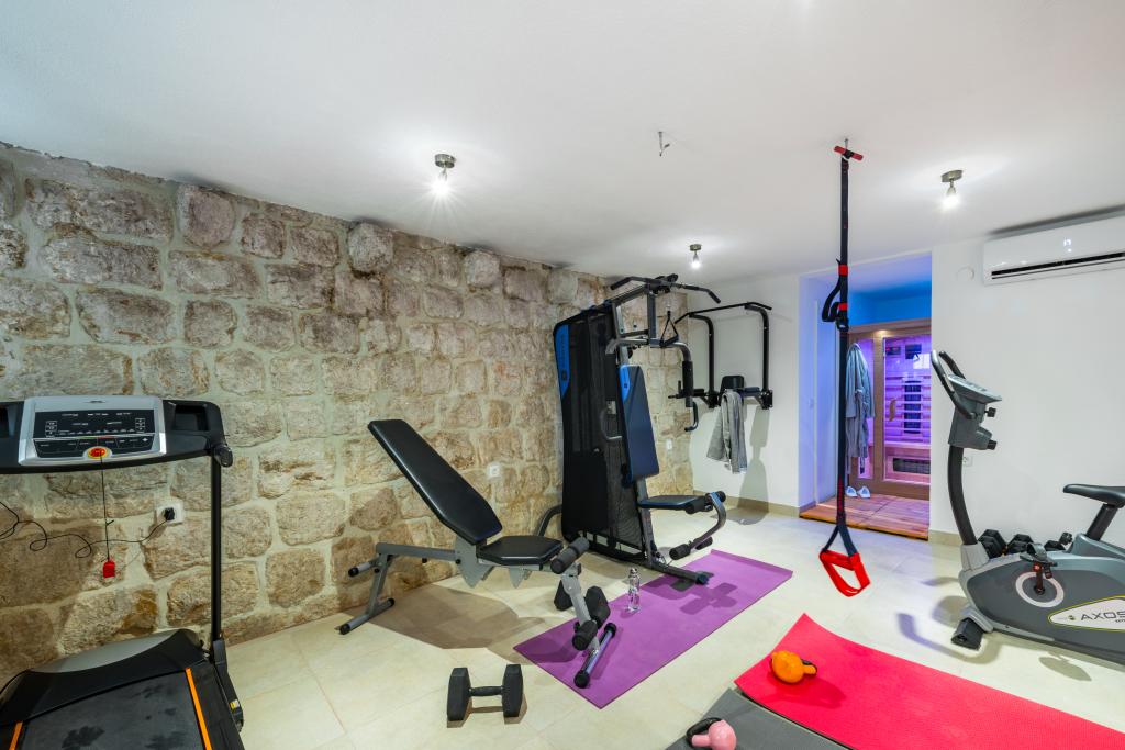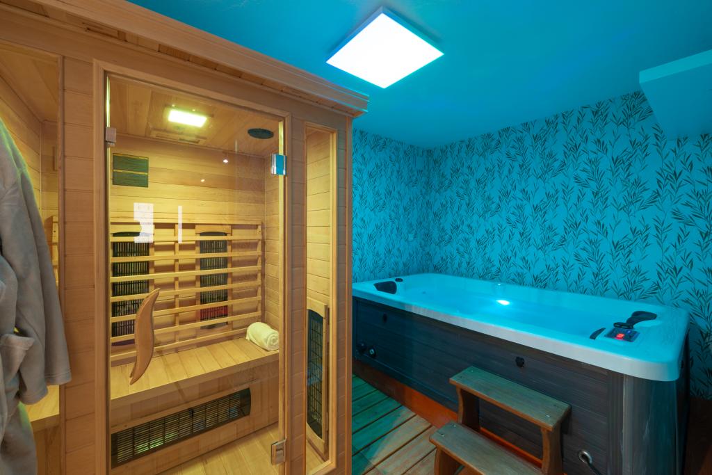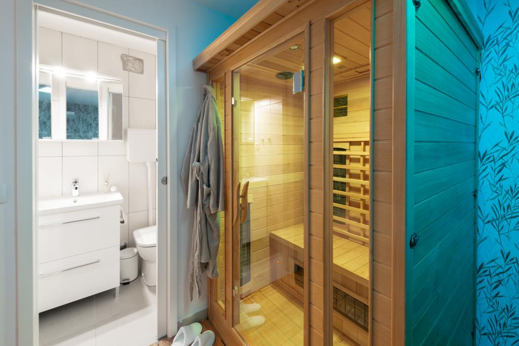 Esta villa rústica tradicional, bellamente decorada, ha sido recientemente renovada, cuenta con entrada privada y 100 m² de espacio habitable para su uso exclusivo. Tiene capacidad para 4 personas en las habitaciones y una persona en una cama supletoria en el salón. En la planta baja, encontrará un centro de bienestar con gimnasio, sauna de infrarrojos y jacuzzi para su completa relajación. El baño está junto al gimnasio. En la primera planta encontrará un salón con Smart TV de pantalla plana (con canales MaxTV), comedor, cocina totalmente equipada y un aseo. La segunda planta consta de 1 baño y 2 dormitorios: Dormitorio 1: Dos camas individuales. Dormitorio 2: Dos camas individuales. El baño incluye lavadora y secadora. Plancha y tabla de planchar. Aire acondicionado en el salón, cada dormitorio y el gimnasio. Los baños, el gimnasio y la sauna cuentan con calefacción por suelo radiante.