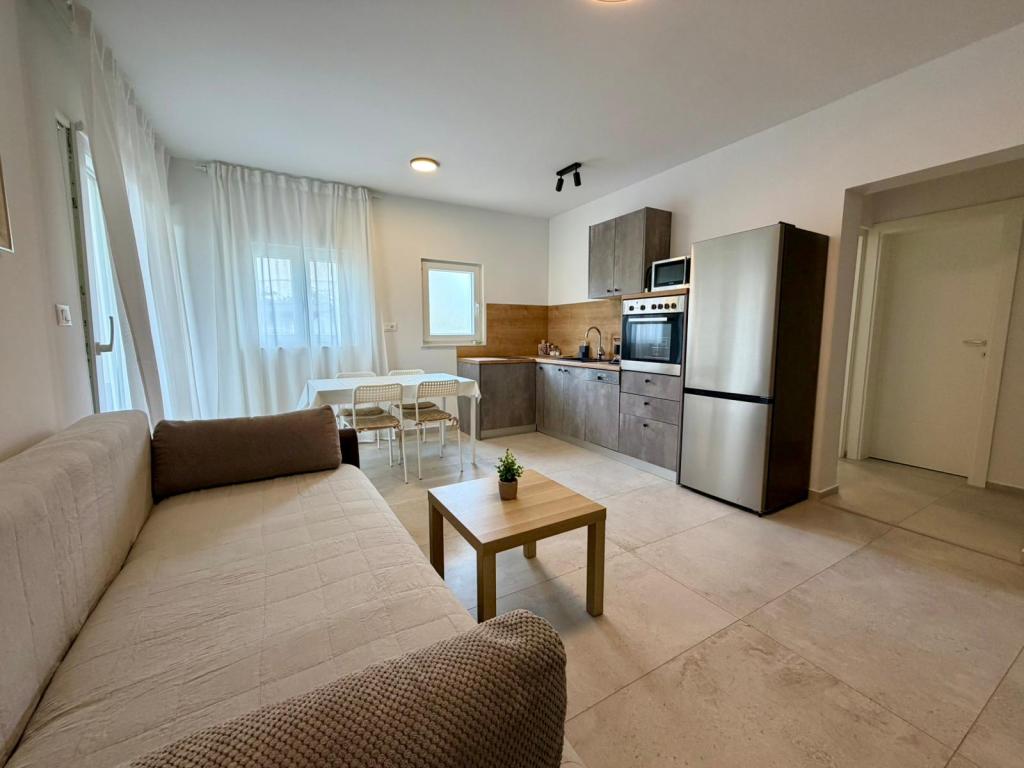Apartamentos en una casa nueva con cocina privada totalmente equipada, ropa de cama, baño y terraza. El mar está a menos de 50 m. Ambiente familiar. Jardín y entorno seguros para niños. Aparcamiento y barbacoa, a 50 m del mar, a 10 minutos a pie del centro y a 15 minutos en coche de Zadar. Perfecto para vacaciones, leer, escuchar música, relajarse, conectar con la naturaleza y cuidar la salud. Hay varias playas cerca (de piedra, hormigón, guijarros y, en el centro del pueblo, una playa de arena). Sukošan es un pueblo y puerto en una bahía (Puerto Dorado de Sukošan), a 11 km al sureste de Zadar. Sukošan es amplio y tranquilo, con una larga costa, numerosas calas apartadas y un mar limpio y cristalino bordeado de islas que se extienden hasta el Parque Nacional de Kornati. Sukošan cuenta con un gran puerto deportivo, Dalmatia, el complejo natural de Tustica, playas de arena, hermosos edificios, olivares y viñedos, tradición...