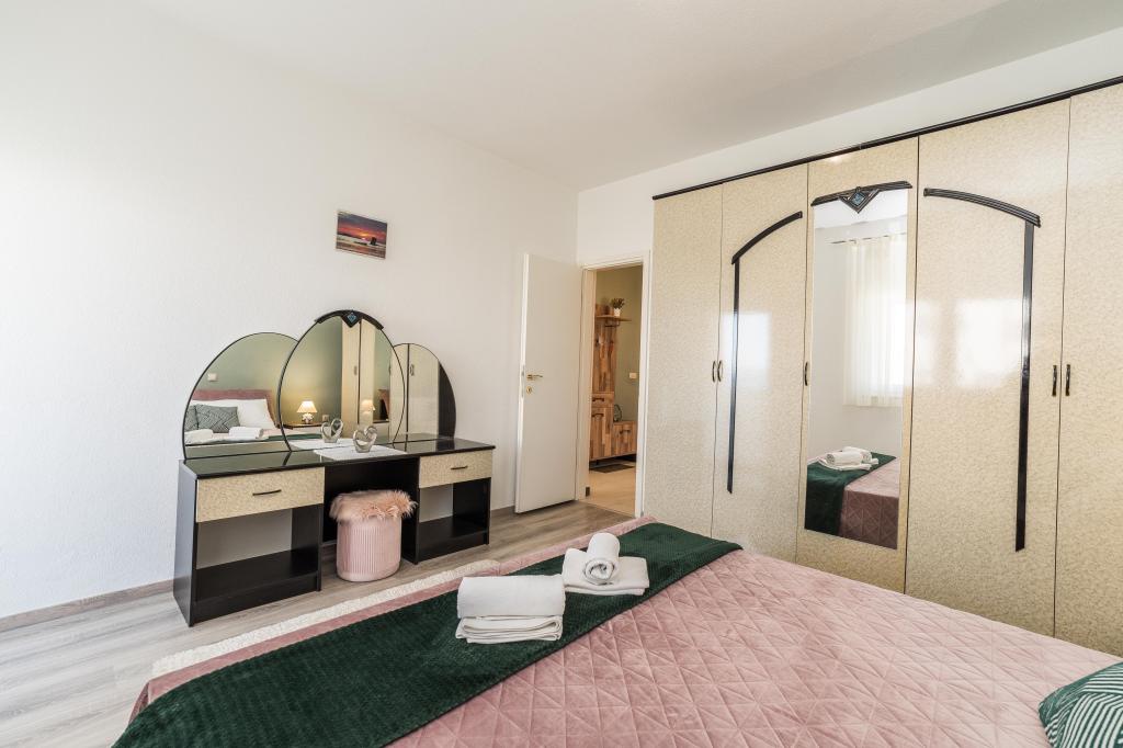 Los apartamentos están ubicados en una casa familiar, en una zona tranquila de Sukosan, a 60 m del mar, a 15 minutos a pie del centro. Los huéspedes tienen a su disposición dos cómodos apartamentos de dos dormitorios con vistas al mar y entrada independiente. Cada apartamento está completo y moderno equipado con aire acondicionado, SAT / TV e Internet Wi-Fi. Se proporciona aparcamiento para cada apartamento y los huéspedes pueden utilizar la barbacoa. Muy cerca hay un parque infantil abierto con instalaciones para niños, una cancha de baloncesto y una cancha de voleibol de playa. Le deseamos una agradable estancia con nosotros.