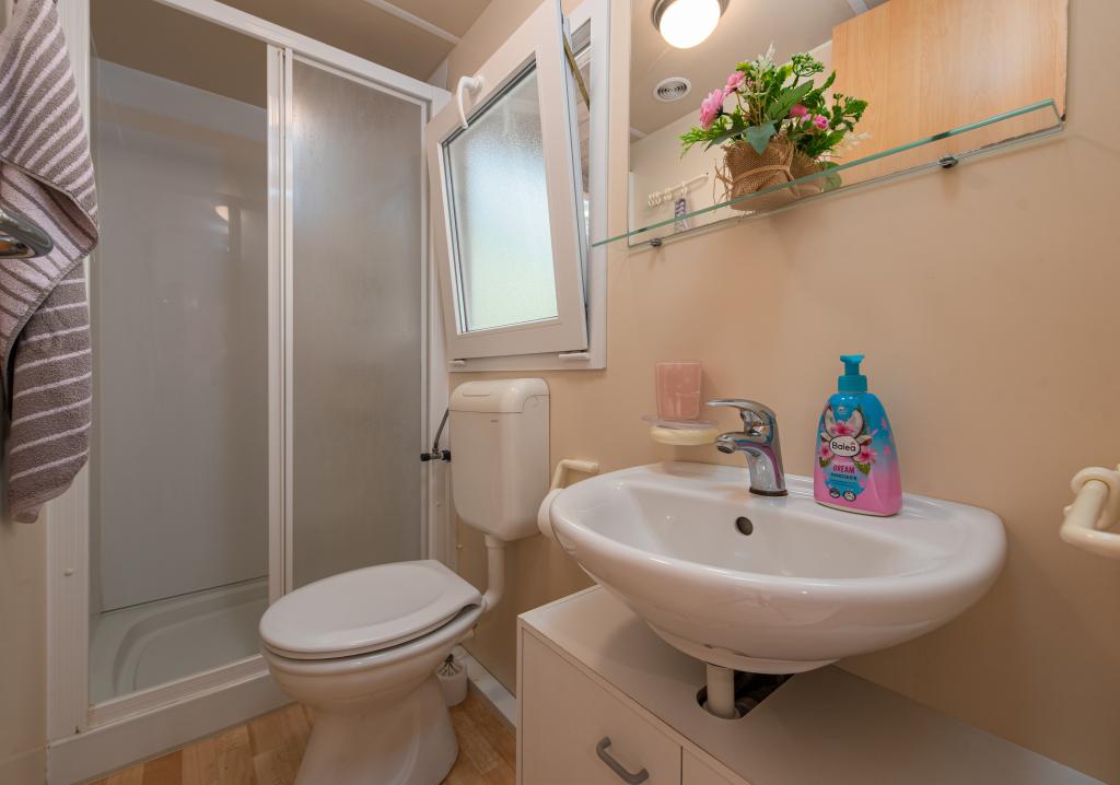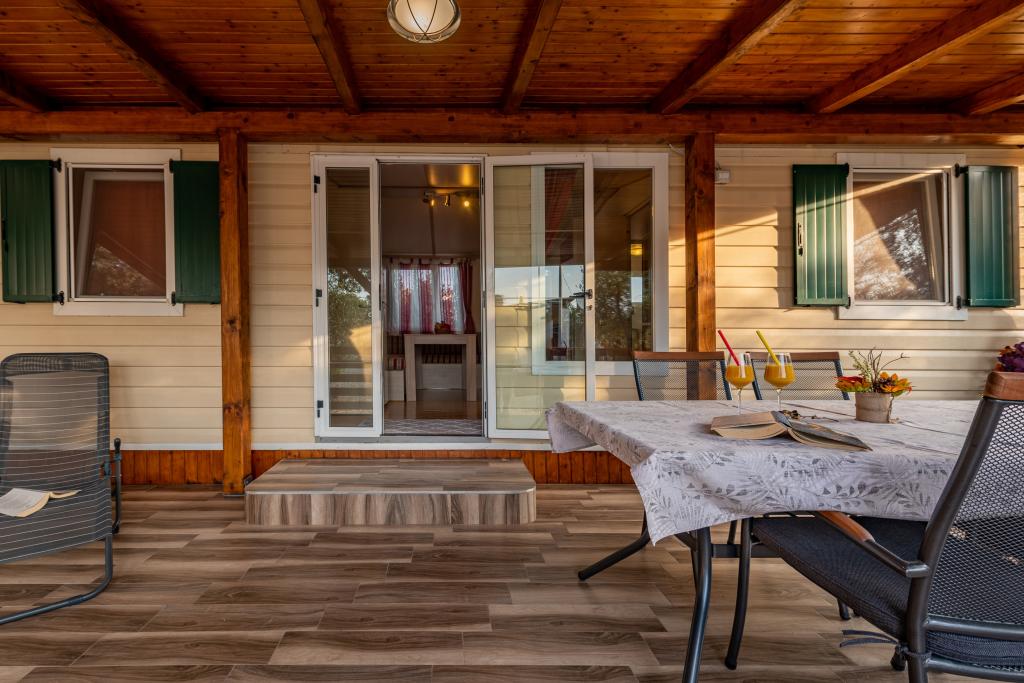 Una casa móvil bellamente decorada con dos habitaciones, cada habitación tiene su propio baño y aseo y una gran terraza, una piscina nueva con agua salada climatizada, hamacas modernas y cómodas que son gratuitas y, además, unos anfitriones muy amables y simpáticos. que están siempre a tu disposición. Simplemente perfecto.