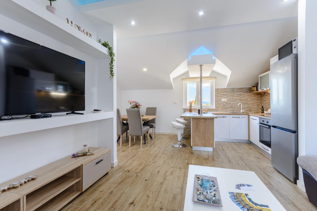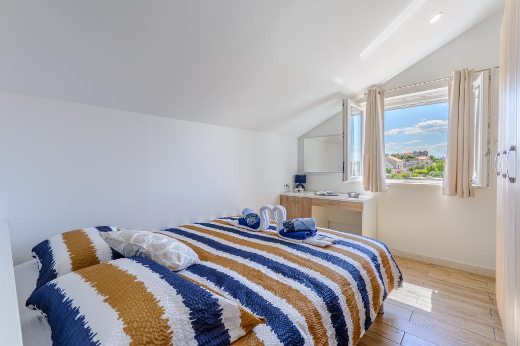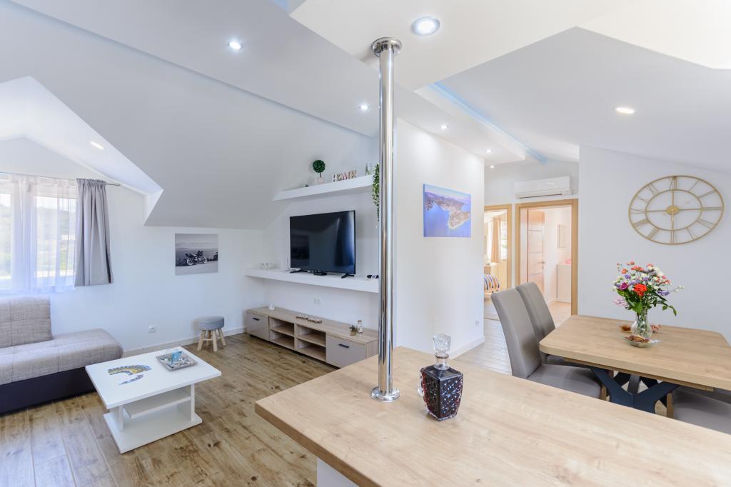 Bienvenido a nuestro encantador apartamento, ubicado en pleno centro de Sumartin, en la hermosa isla de Brač. A solo 100 metros del mar, ofrece la combinación perfecta de comodidad y conveniencia. Tiene capacidad para 5 personas (4+1) y es ideal para familias, parejas o amigos que deseen relajarse y disfrutar del encanto de la isla. Disfrute de una estancia tranquila a poca distancia de playas, restaurantes y el puerto. También disponemos de aparcamiento seguro. ¡Esperamos su llegada!
