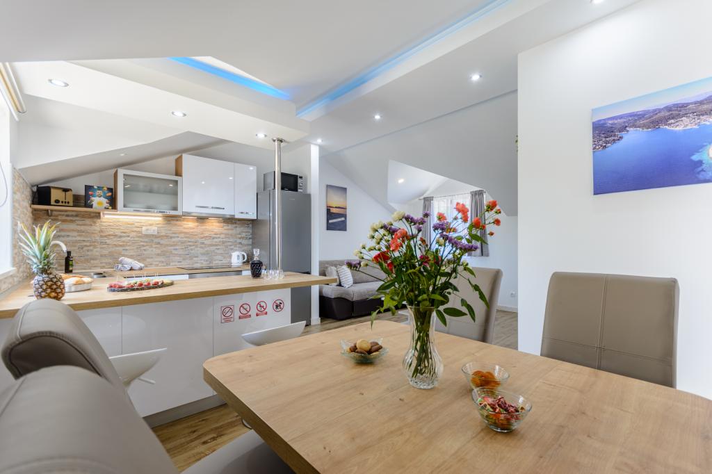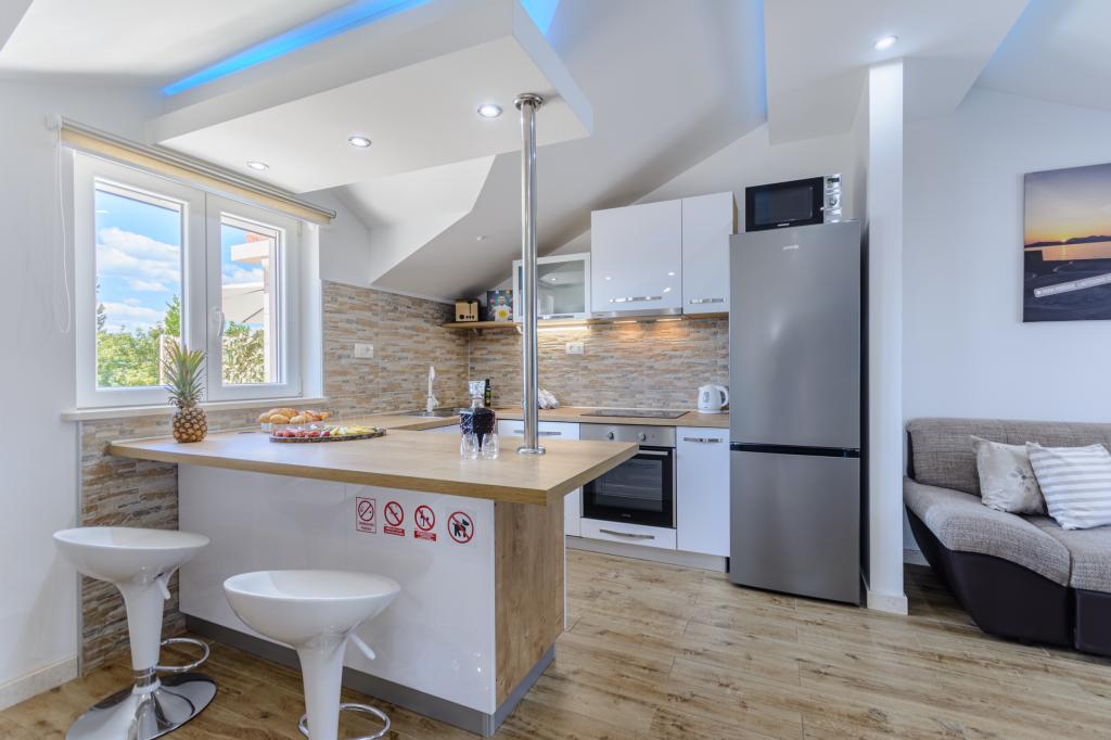 Leer más Unidades de alojamientoA su llegada, sus anfitriones le darán la bienvenida personalmente a su alojamiento. Además de su anfitrión, Ivan, también conocerá a Eni. Al reservar, Eni será su contacto principal para toda la información. Antes de su llegada, recibirá instrucciones detalladas sobre cómo llegar al alojamiento, así como diversas recomendaciones sobre qué visitar durante su estancia para disfrutar plenamente de la isla de Brač. El registro de entrada es posible después de las 15:00 y la salida antes de las 10:00. Se requiere un depósito del 50% del precio total de la reserva antes de la llegada, y el resto se paga en efectivo a la llegada.