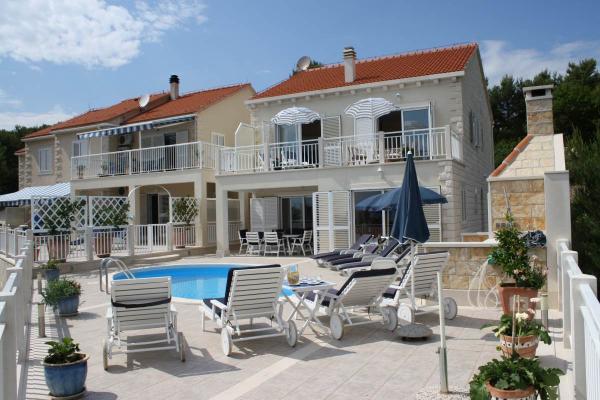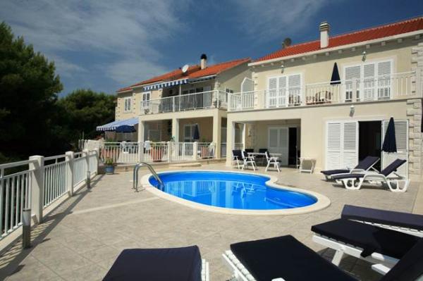 Complejo Mirula consta de villas individuales 8 4 y tres apartamentos, uno de 2 +2 y 4 +2 uno. con capacidad para un total de 16 10 personas o usted puede reservar algunas unidades de alojamiento (villas y apartamentos). La villa cuenta con una piscina que está diseñado exclusivamente para los huéspedes de la villa, pero si reservas villas y apartamentos, juntos, huéspedes de la casa también puede usar la piscina. En cada piso de la villa hay una cocina totalmente equipada (cocina, horno, lavavajillas, frigorífico, microondas, licuadora, tostadora, cafetera, café espresso y cappuccino maker) y equipos para el bar. En la terraza de la villa es una chimenea de piedra con los accesorios y parrilla eléctrica. Cuatro dormitorios con cinco baños. Los apartamentos están totalmente equipados con todo el equipo necesario .. Cada habitación tiene su propio cuarto de baño, así como Internet inalámbrico en todas nuestras habitaciones. La especificidad del complejo Mirula sigue siendo parte de un pequeño pueblo pesquero y turístico y con vistas al mar y cerca de la playa.