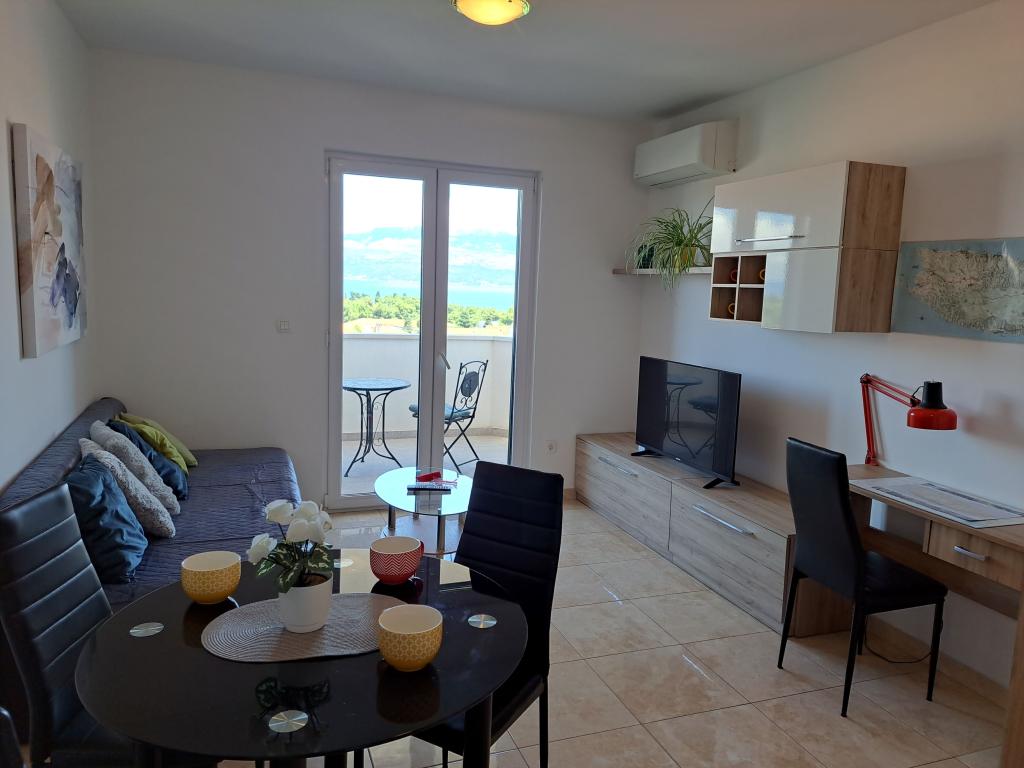 Los apartamentos se encuentran en una zona tranquila de Supetar, a tan solo 5 o 10 minutos a pie de todos los servicios del pueblo (restaurantes, playas, tiendas, pistas de tenis, centro...). Constan de dos dormitorios, baño, cocina con comedor y salón, y un balcón cubierto con vistas al mar. Ambos apartamentos disponen de televisión, wifi, aire acondicionado y plaza de aparcamiento vigilada.