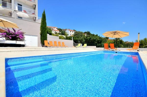 - 10 apartamentos recientemente renovados y modernamente equipados (para alojamiento de hasta 54 personas) - piscina con una gran terraza adecuada para reuniones y eventos. - sala de reuniones multifuncional - sala común (taberna) adecuada para socializar y fiestas - gran terraza en la azotea del edificio (200 m2) para reuniones agradables por la noche con vistas a las estrellas y al canal Brač - estacionamiento privado - WiFi gratuito en toda la propiedad - Uso gratuito de bicicletas gigantes para los huéspedes de los apartamentos. y mucho más. .