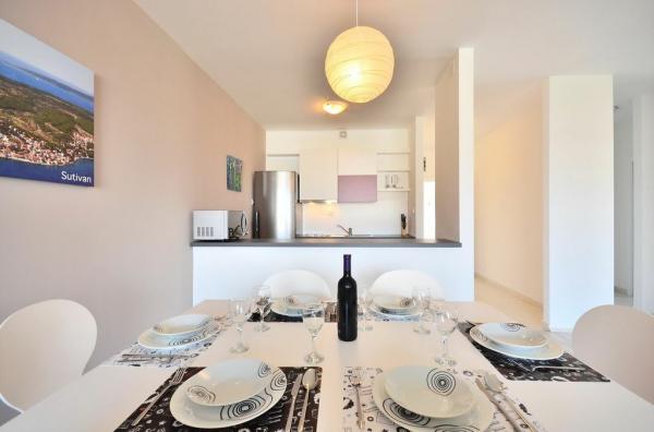 Los modernos apartamentos BRETIA están ubicados en Sutivan, a poca distancia de todas las atracciones e instalaciones que harán que su estadía sea más placentera y fácil. Con un estacionamiento privado seguro incluido en el precio de un paseo de 200 metros de largo hasta la costa, la playa y el centro de Sutivan se convertirán en su hermosa ruta diaria para caminar. También hay instalaciones disponibles para los huéspedes del apartamento, como piscina, tumbonas, sombrillas, barbacoa, sala de juegos para niños, terraza en la azotea, bicicletas gigantes. . Para una estadía más cómoda, los apartamentos están equipados con televisores inteligentes LED LCD, internet Wi-Fi y equipo de cocina. . ¡Esperamos su llegada!