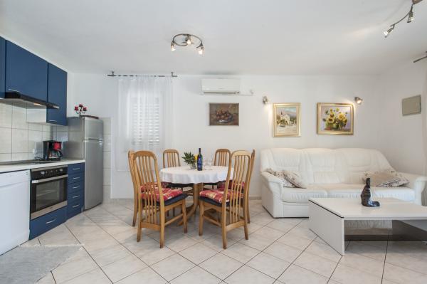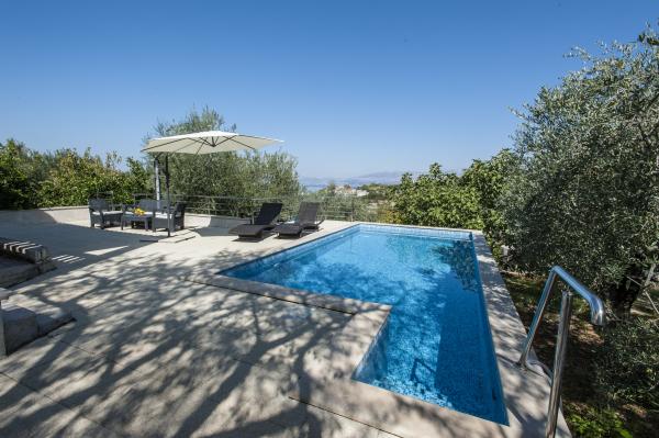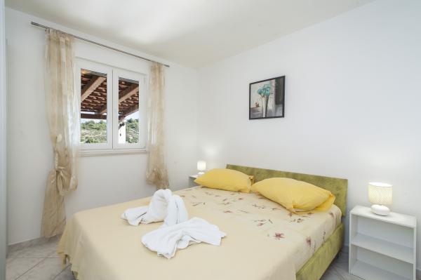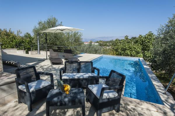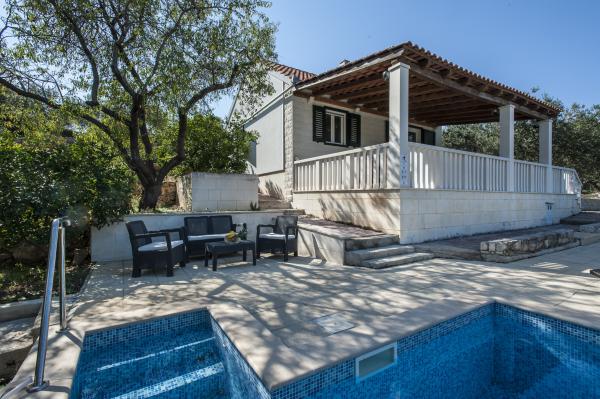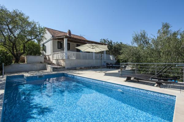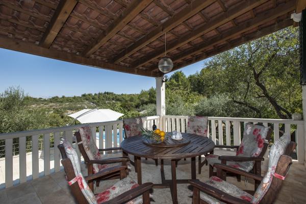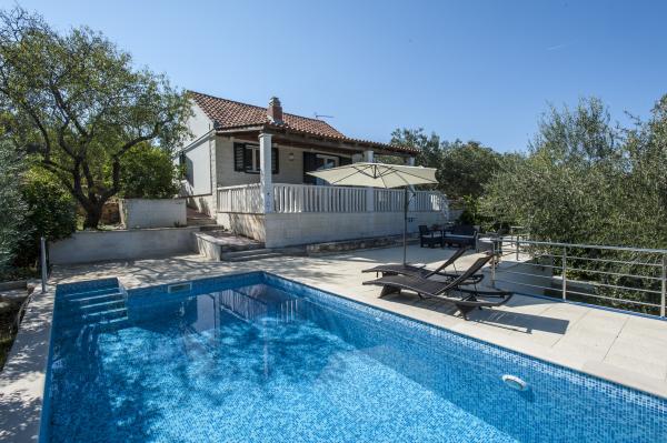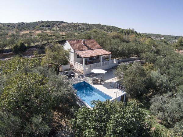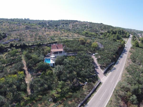 Totalmente equipada casa de la isla, rodeado de olivos. Con una gran terraza cubierta ofrece una vista panorámica de la ciudad de Bol, el mar y la ciudad de Split. terraza cubierta tiene muebles de jardín En el lado oeste hay una terraza con barbacoa. La casa tiene espacio para dos plazas de aparcamiento. La casa tiene 2 dormitorios. En la cocina, sala de estar tiene un sofá cama. La cocina dispone de lavavajillas. El baño tiene una máquina de ducha, inodoro, lavabo y lavadora. Lugar lleno de playas de arena que se puede llegar en coche. En el pueblo hay varios servicios de comidas y deportivas. Los amantes de la bicicleta pueden disfrutar de las 25 pistas de bicicleta de la isla.