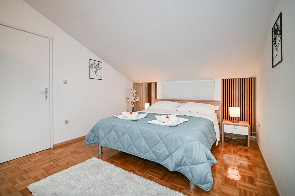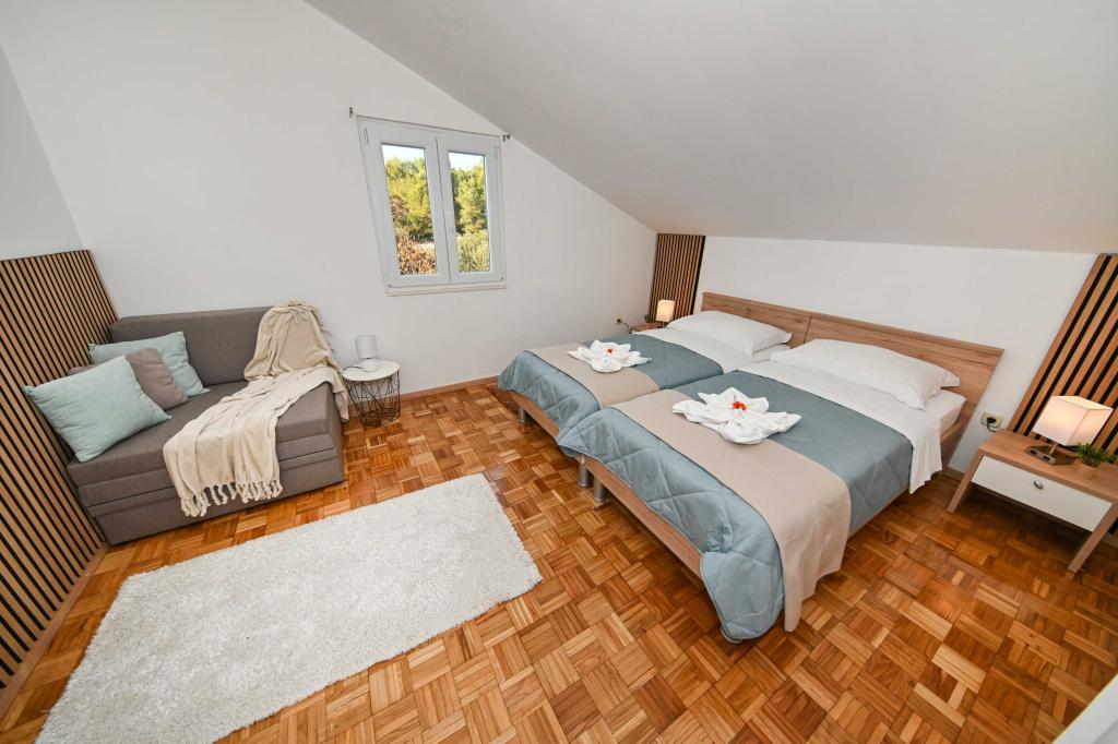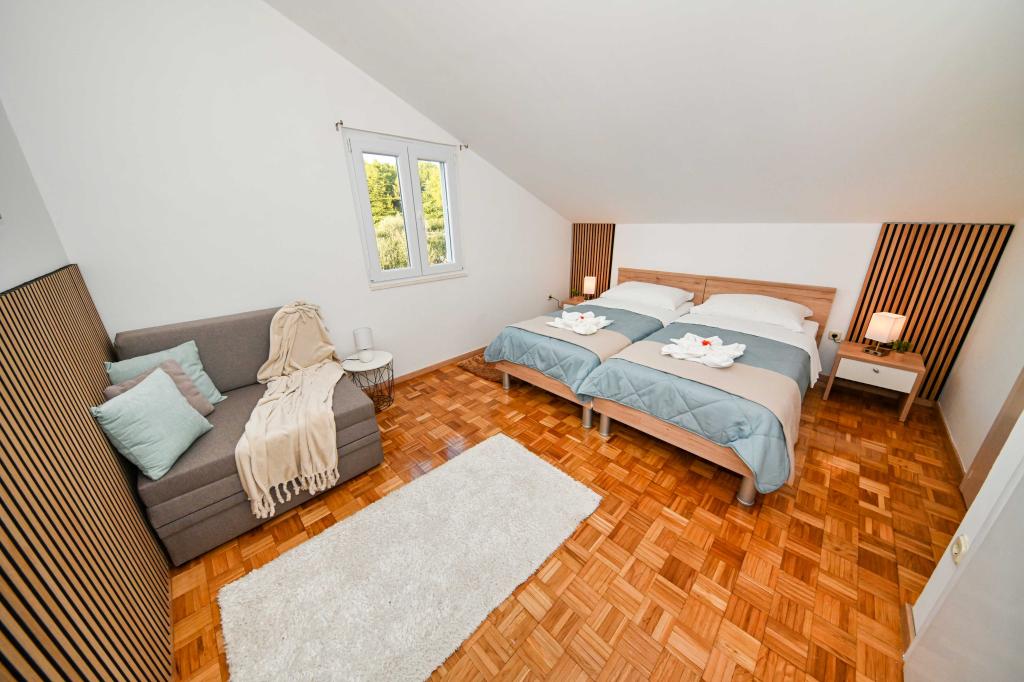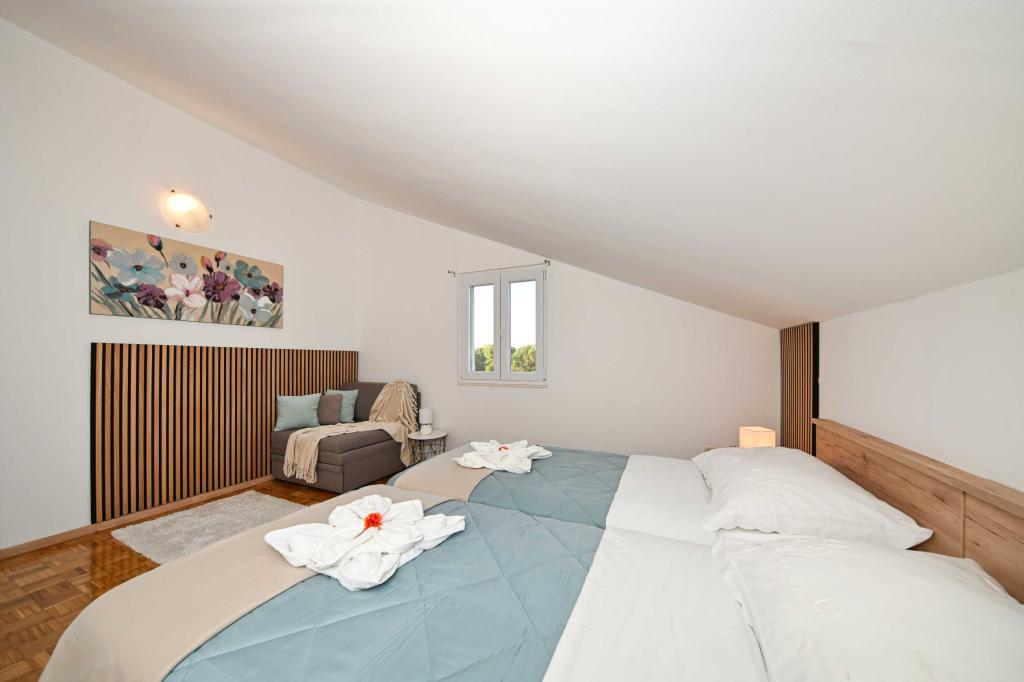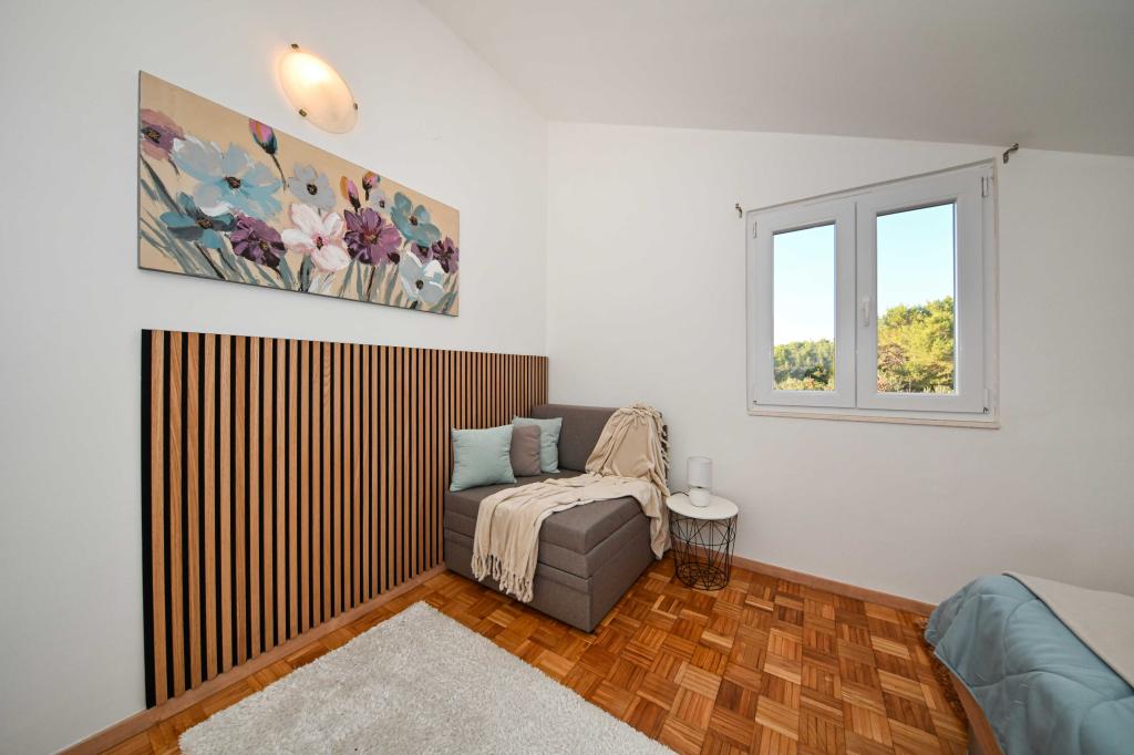 Danos la oportunidad y pasar unas vacaciones inolvidables usted experimentará con sólo nosotros. En nuestros apartamentos magníficamente ajardinada cerca del bosque de pinos y el mar de sus vacaciones será completa. El paseo marítimo y el puesto de observación cerca, caminos para bicicletas, cerca de Vrana Parque Natural del Lago, y los parques nacionales de Kornati y Krka cascadas, pueblos antiguos de Zadar y Sibenik, se reunirán sin duda las expectativas de los clientes más exigentes. Nuestro complejo es el tamaño de 2500m2, rodeada de olivos y bosques de pinos. Desde el patio hay una bonita vista del Canal de mar-Pasman. En el recinto se encuentra: • Casa de la familia, donde hay dos apartamentos independientes (para 4 y 6 personas). • Los apartamentos están equipados con aire acondicionado, TV, conexión Wi-Fi gratuita y terrazas con vistas al mar ya la piscina. • Piscina: Al lado de la casa hay una piscina con un bello entorno y tumbonas • La piscina se encuentra, hay dos baños con duchas y dos baños, espacio separado para la ropa, que se Opremjen con una lavadora y secadora