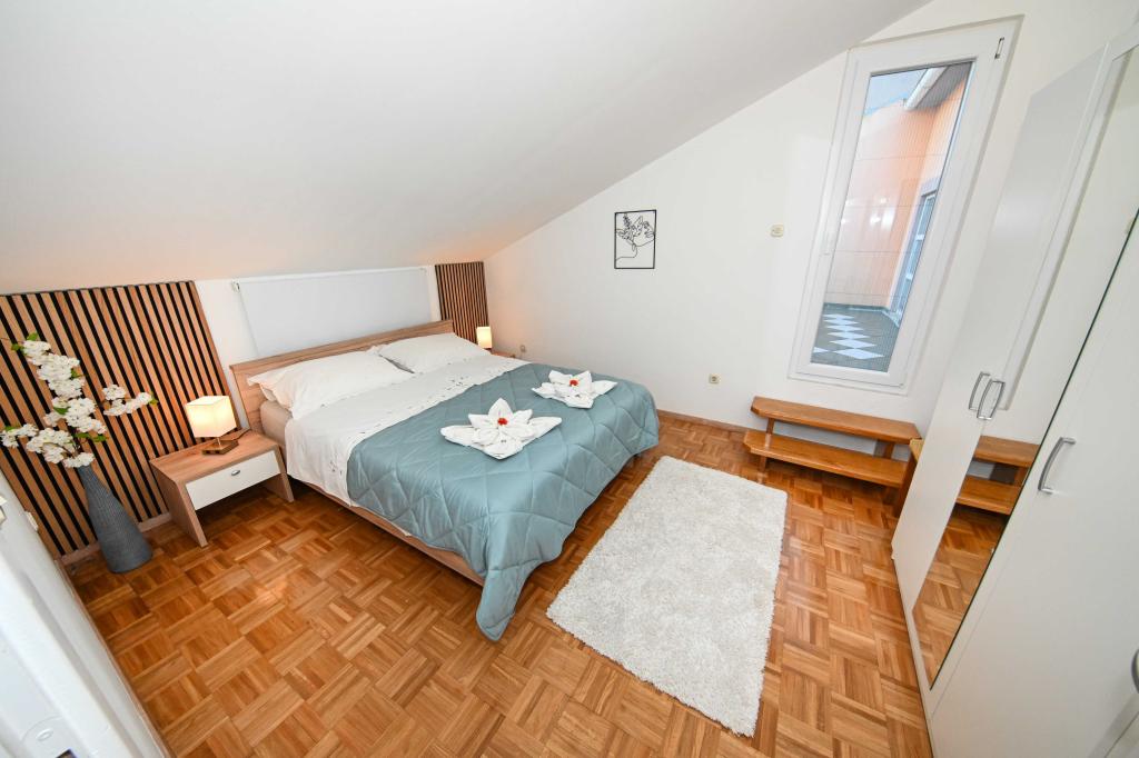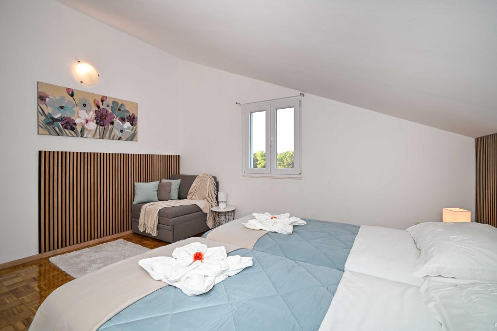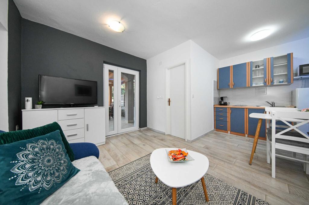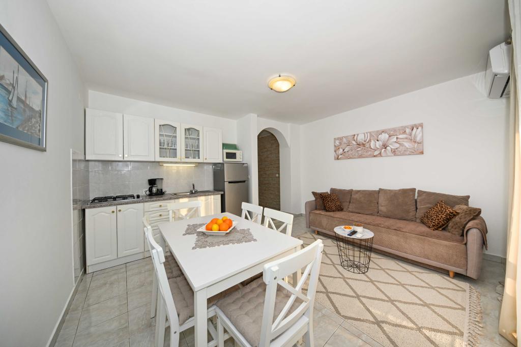 Tasa turistica no está incluida en el precio.Tamaris: En la costa de arena, es el hogar de nuestro pequeño restaurante en el que ofrecemos lo siguiente: La posibilidad de media pensión para los huéspedes, La posibilidad de comidas individuales - para nuestros huéspedes a precios aceptables, La posibilidad de alquilar sillas de playa y sombrillas, La posibilidad de organizar diversos cena festiva, El aparcamiento del hotel cerca de la playa, La playa es muy adecuado para niños y adultos. Oferta adicional: La posibilidad de la pesca en el mar, La posibilidad de alquilar un barco, La posibilidad de viajes a la Kornati y otros destinos Conducir con un submarino