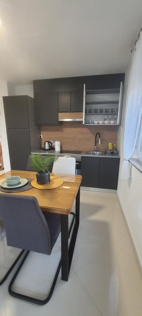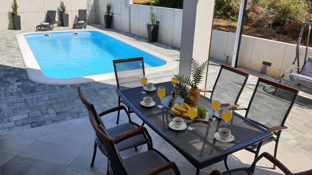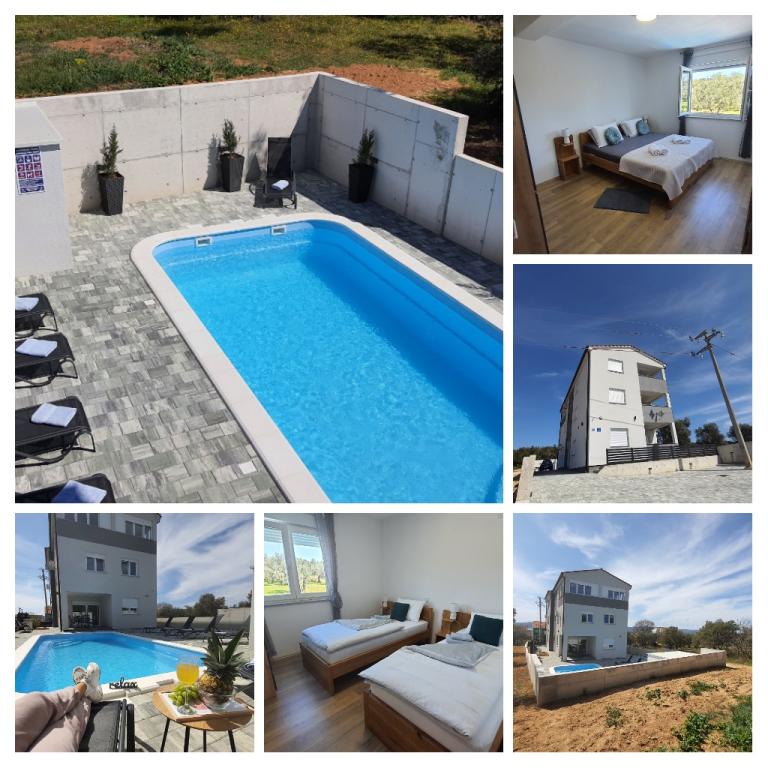 Piso totalmente equipado y con piscina climatizada en edificio de nueva construcción con un total de 4 viviendas. No hay vecinos cerca. Se encuentra en la naturaleza entre olivares. A 400 m del mar, a 700 m del centro donde hay muchos restaurantes, pastelerías, tiendas. El primer pueblo es Biograd na Moru, a 3 km. A una distancia de 2 km hay centros comerciales Lidl, Plodine, Kaufland, Bure center.