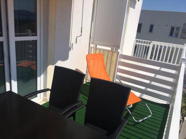 Apartamentos con vista al mar: terraza, aire acondicionado, calefacción, parrilla, estacionamiento, wifi. A 450 m de la playa. A 400 m del centro, a 350 m de la tienda.