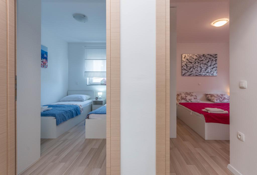 El edificio fue construido como una casa de 6 apartamentos que fueron construidos a propósito como unidades independientes (apartamentos), con entrada independiente, dentro de una escalera común. El apartamento Turquoise 1 es adecuado para familias con niños porque en 58 m2 ofrece 2 dormitorios, una cocina cómoda con una sala de estar abierta. La cocina incluye lavavajillas, microondas, cafetera, nevera grande con congelador, cocina eléctrica con horno y vitrocerámica. El salón dispone de TV de 52", WIFI gratis. Junto al salón hay una amplia terraza y patio con barbacoa. El baño ofrece lavadora, secador de pelo, toallas y productos básicos de higiene. El apartamento se encuentra a 50m de la playa con piedras pequeñas y la costa, a 100 m del centro de la ciudad y otras instalaciones. El apartamento 2 está ubicado en el 1er piso del edificio y no tiene derecho a usar el patio. Dentro del baño no hay lavadora.