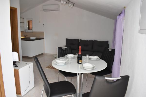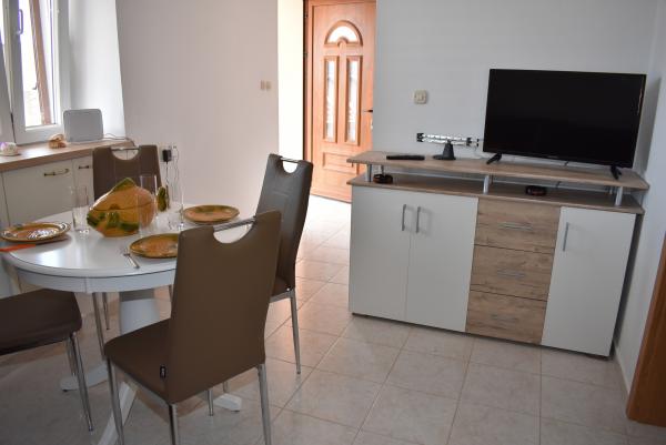 Con un dueño amable, simple y discreto (no vive en la casa donde están estos apartamentos, pero para vivir, probablemente sería lo mismo, este apartamento es perfecto para una familia de tres o cuatro. Amplia terraza, apartamento espacioso, todo limpio, ordenado y mantenido. Todos los electrodomésticos funcionan, todo está como en las fotos e incluso mejor, ya que nos sorprendió porque teníamos una lavadora, plancha y tabla de planchar, secador de pelo ... que no se ve en las fotos y en el equipo que hay. Vlatka y los muchachos