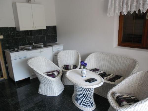 Apartamento (para 6 personas) - consta de cinco habitaciones y una gran terraza. De éstos, dos habitaciones con camas dobles, un dormitorio con dos camas individuales, salón con cocina y cama supletoria y cuarto de baño con ducha. Aplicación de TV, ST, aire acondicionado, nevera con congelador grande. App tiene una superficie de 70 metros cuadrados. Apartamento (para 4 personas) - consta de tres habitaciones, amplias terrazas y balcones. De estos, un dormitorio con cama doble y una habitación con dos camas individuales, baño con ducha y sala de estar con cocina y cama supletoria. Aplicación de TV, ST, aire acondicionado, nevera con congelador grande. App tiene una superficie de 50 metros cuadrados. Estamos ubicados en el extremo de la no tan abarrotado en la playa. Las estancias separadas de la habitación. Hermosa vista de las islas y el mar, parrilla, estacionamiento mar 70 metros ACCIÓN APP A4 (a) el término APP A6 (b) el término plazo