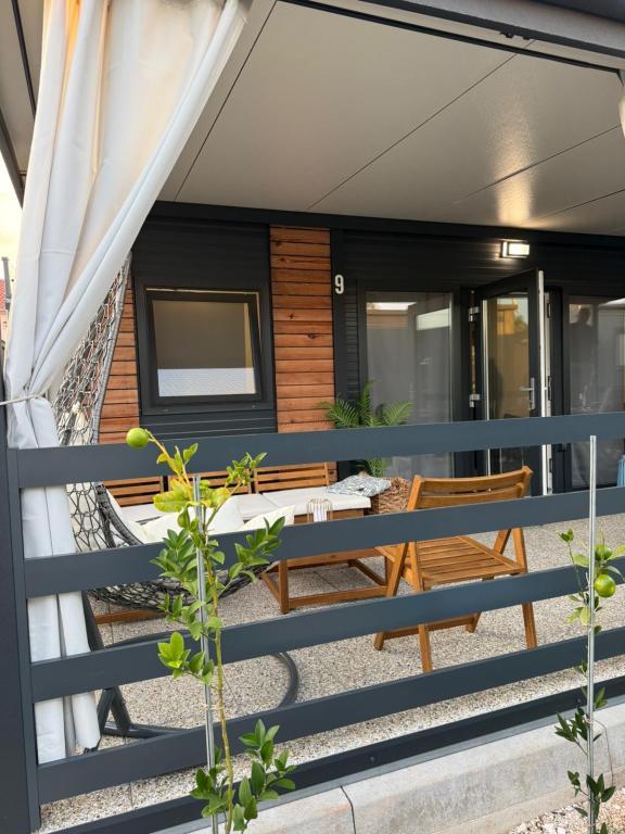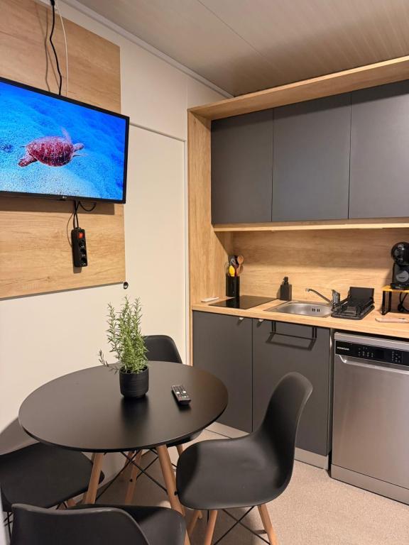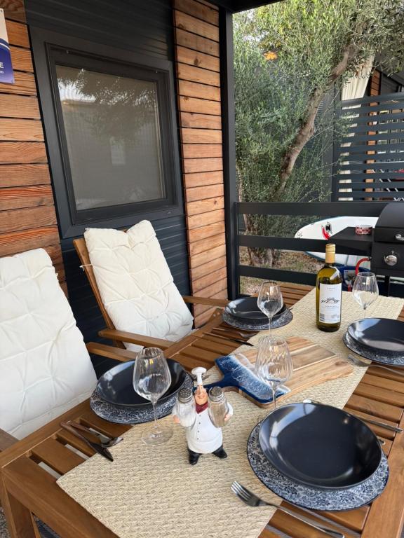 Una hermosa casa móvil junto al mar, a solo unos pasos de una hermosa playa de guijarros y una costa tranquila, cerca de restaurantes y cafés, agradable para descansar y pasar el rato con amigos, adecuada para niños, porque pueden caminar para nadar desde la propia casa.