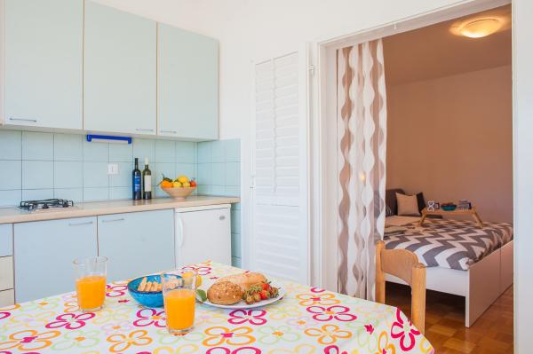 Hana Home – Apartamentos con vistas al mar | Tisno. Hana Home ofrece alojamiento elegante en 8 apartamentos de decoración moderna, ubicados a solo 30 m del mar y con hermosas vistas. La playa de Jazina está a 600 m y el centro de Tisno, a solo 10 minutos a pie. Todos los apartamentos disponen de balcón, aire acondicionado, TV, internet de alta velocidad y cocina totalmente equipada con cafetera y tetera. Los huéspedes tienen acceso a una amplia terraza con barbacoa y aparcamiento privado gratuito. Durante julio y agosto, se celebran famosos festivales de música en Tisno, mientras que la isla de Murter ofrece numerosas oportunidades para explorar: bahías, playas y paseos marítimos. Cerca se encuentran los parques nacionales de Krka y Kornati y las históricas ciudades de Šibenik, Zadar, Split y Trogir. Tisno cuenta con excelentes conexiones de transporte, ya que se encuentra entre los aeropuertos de Zadar y Split, con rápido acceso a la autopista. Si busca unas vacaciones elegantes junto al mar, una ubicación perfecta y una experiencia única en Dalmacia, Hana Home – Apartamentos Tisno es la opción ideal. Esperamos su llegada. Hana