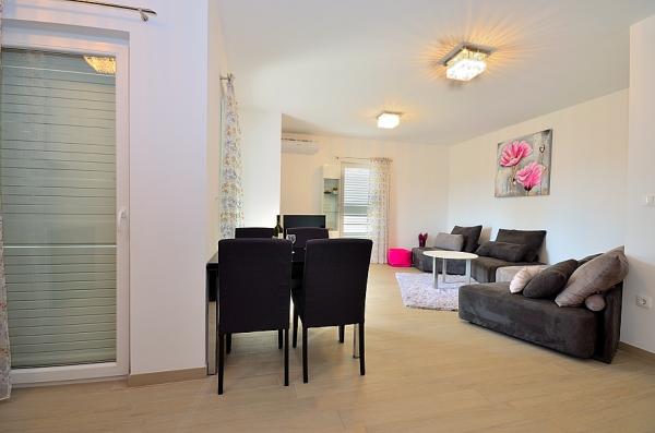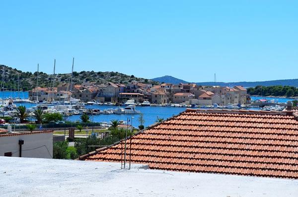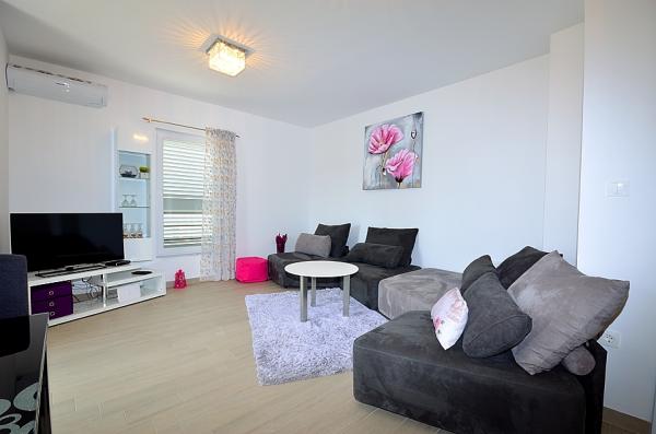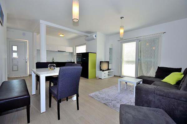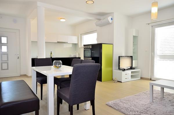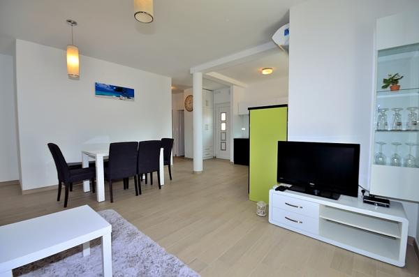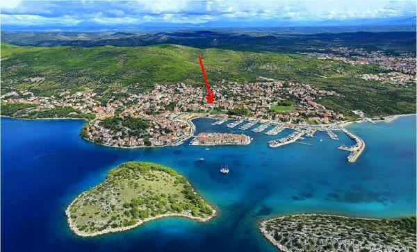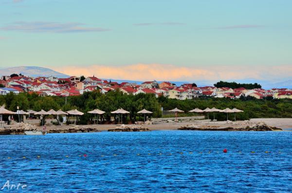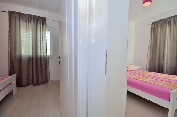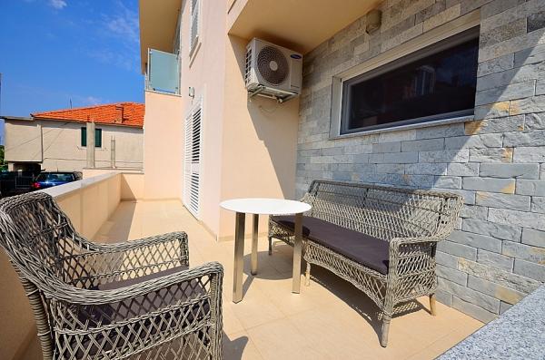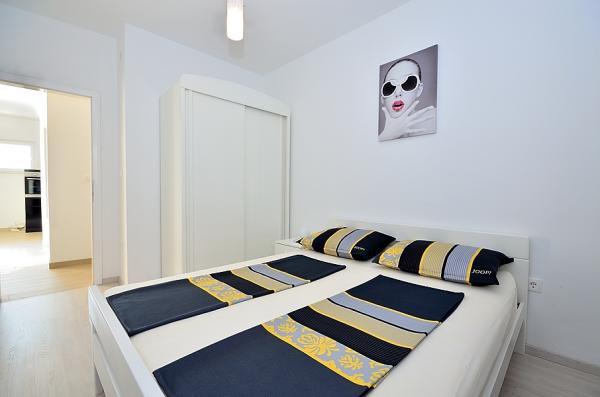 Apartamento Tribunj- con dos dormitorios cama, inodoros, lavabos de baño, cocina y sala de estar, terraza, estacionamiento, aire acondicionado, a 300 metros de la playa, a 200 m del centro, a 100 m de las tiendas y restaurantes .