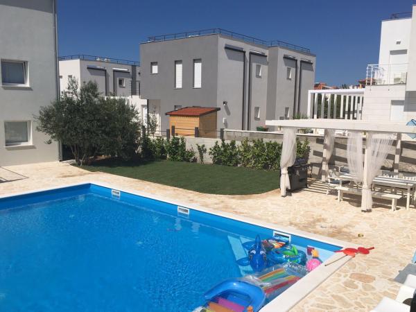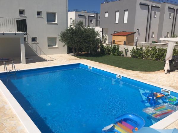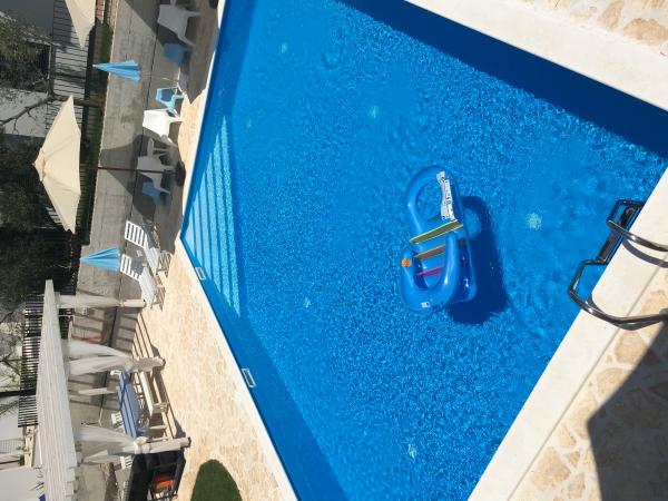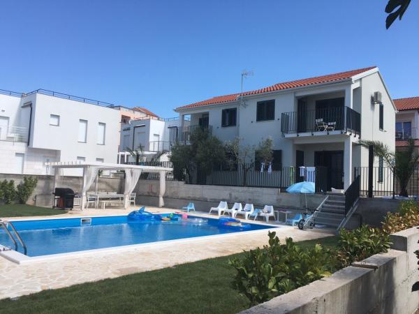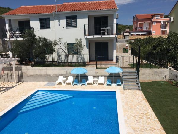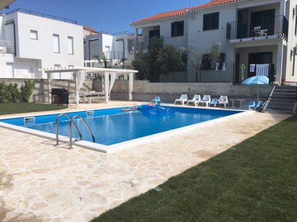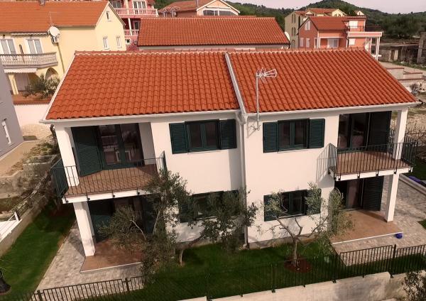 Totalmente equipado y moderno nuevos apartamentos en una zona tranquila de Tribunj, cerca de la ciudad, ideal para unas vacaciones sin preocupaciones. Los apartamentos son ideales para dos, pero pueden alojar cómodamente hasta cuatro personas. Los apartamentos están totalmente equipados con todo lo necesario para unas vacaciones sin preocupaciones - desde la cocina, baño, lavadora, lavavajillas, ropa de cama, toallas y zona común al aire libre con una piscina, tumbonas, barbacoa y huerto. Debido a la división de las unidades (dos unidades separadas, cada una con dos apartamentos en cada uno), adecuado para familias o la sociedad de 8 miembros que pueden permanecer en la misma unidad con la misma entrada en dos apartamentos independientes. Es posible alquilar la casa entera, que puede albergar a 16 personas. Los apartamentos están situados a pocos minutos a pie del centro Garade en el que el mercado, tiendas, farmacia, centro de salud, cafés, restaurantes, un parque y puerto deportivo, ya 7 minutos a pie de la hermosa playa de Tribunj. Área Tribunja es fantástico debido a su ubicación, ya que está situado cerca de la ciudad, Sibenik,
