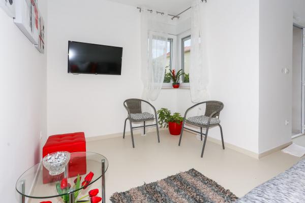 Esta moderna instalación está ubicada en un 4 minutos a pie de la playa. El Fondo para Tribunj Suites se encuentra en una zona tranquila de Tribunj, a 1, a 2 km del puerto de Tribunj y 200 metros del puerto deportivo Tribunj. La propiedad ofrece alojamiento con aire acondicionado, conexión Wi-Fi gratuita y aparcamiento privado gratuito. Todas las unidades incluyen una zona de estar y comedor. Algunos incluyen una terraza y / o balcón. Todas las unidades disponen de cocina equipada con microondas, tostadora, nevera, cocina y un hervidor eléctrico. También tienen un baño privado con ducha y secador de pelo. Los huéspedes pueden utilizar la barbacoa en el lugar Tribunj El Suites. el aeropuerto de Zadar se encuentra a 49 km de la propiedad El Tribunj Suites.