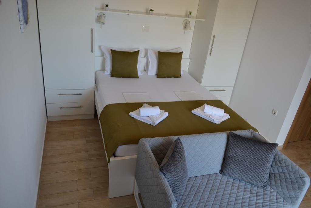 Se alquilan 4 apartamentos completamente renovados en Tribunj, a 5 km de Vodice y 12 km de Šibenik. Los apartamentos están situados en una atractiva ubicación a sólo 150 m de la playa principal de la ciudad. En las inmediaciones del apartamento hay restaurantes, cafeterías, tiendas y una farmacia. 3 apartamentos (2+2) constan de un dormitorio con una cama doble grande, una cocina, una sala de estar con sofá cama (sofá de calidad con colchón), un baño y un balcón con vistas al mar. El estudio está destinado a dos personas. Tiene una cocina, una cama doble, un baño y un balcón con vista al mar. Todos los apartamentos disponen de aire acondicionado, secador de pelo, Smart TV y conexión Wi-Fi gratuita. Estacionamiento seguro frente al apartamento.