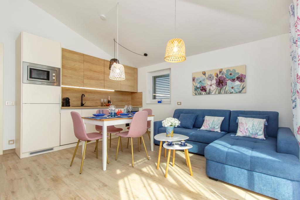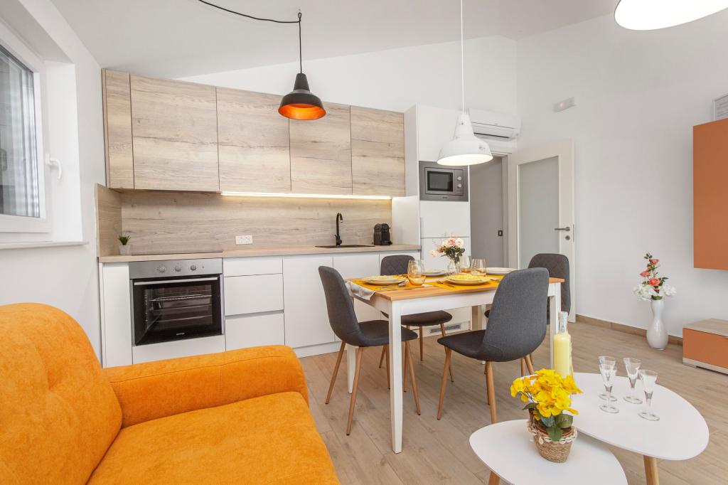 Las instalaciones Three Olives son un edificio nuevo y abre sus puertas a los huéspedes por primera vez a partir del verano de 2024. En el patio del edificio hay tres olivos centenarios, una madera tan típica de la costa y las islas croatas, de cuyos frutos se obtiene el aceite de mejor calidad, a menudo llamado "oro líquido". El nombre Tres Olivos sugiere un ambiente de paz, tranquilidad y abundancia. Los apartamentos del edificio son únicos, modernos y totalmente equipados funcionalmente para que te sientas cómodo, ¡como en tu propia casa! La instalación está excelentemente ubicada; se encuentra a 150m del mar y 200m del centro del pueblo. No hay carreteras importantes ni instalaciones comerciales en las inmediaciones, por lo que los huéspedes tienen asegurada la paz durante el día y la noche. En definitiva, todo está listo para tus vacaciones completas.