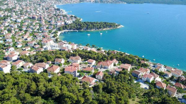 modernos apartamentos con 3 habitaciones dobles, amplio baño con bañera de esquina (WC), 1 cuarto de baño con ducha de hidromasaje (WC), una cocina de lujo con todos los electrodomésticos y amplio salón totalmente equipada y. En una zona tranquila de Trogir, Ciovo por un puente, con un gran balcón desde donde se puede ver una hermosa vista del mar. Superpanorámicos. La instalación se encuentra a 15 minutos a pie del centro ya 5 minutos de la playa. Amplio estacionamiento (2 plazas) únicos huéspedes. Los anfitriones que siempre están disponibles.