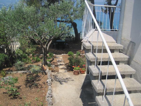 El apartamento está situado cerca del mar, salida desde el jardín está en la playa. Restaurante, tiendas, bares, alquilar una bicicleta, alquilar un scooter en un radio de 100 metros. El aparcamiento está en el edificio y vallado. Gran lugar es la ciudad de Trogir está a 4 km, conectado por autobús. La estación de autobuses está a 100 m.