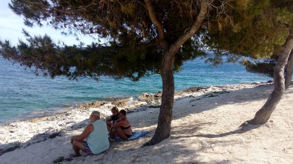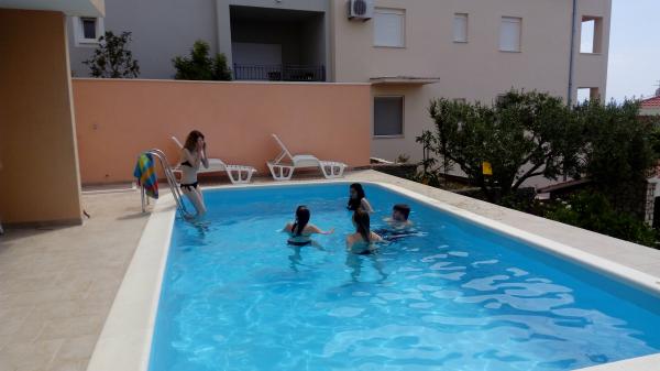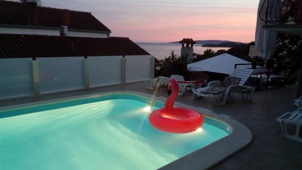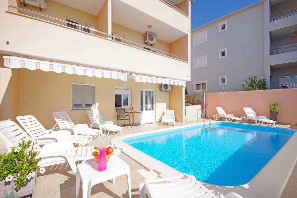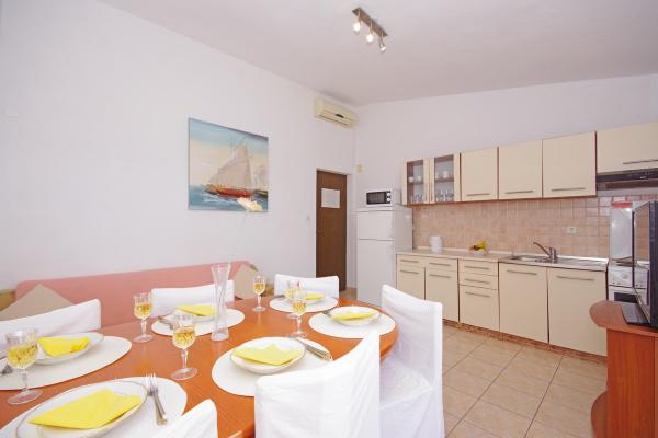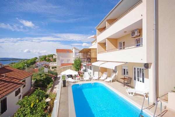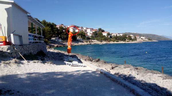 Los apartamentos están situados en una tranquila bahía en el lado sur de la isla de Ciovo, obtuvo el segundo lugar con el mar y con vista al mar abierto. A poca distancia de la casa de un restaurante con una playa y campos de deportes y la bahía sigue a la naturaleza casi virgen, playas naturales y bosques de pinos. Por otra parte, todas las facilidades necesarias urbana y la vida nocturna se encuentra en el centro, que tiene un montón de cafés, restaurantes y un precioso paseo marítimo. Una ventaja especial es la proximidad de Trogir, que es un monumento lleno de monumentos históricos.