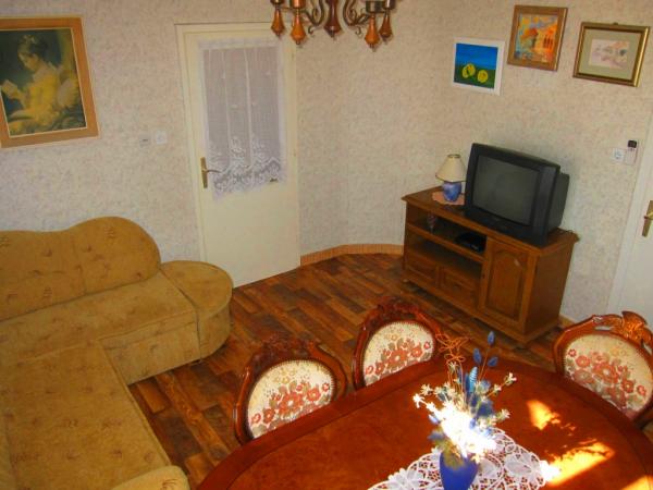 El apartamento es de 80 m2 y está situado en el primer piso de un edificio que está protegido por el Instituto Nacional para la Protección de la UNESCO. Los techos altos y ventanas y la cantidad adecuada de luz en el apartamento le dan un toque especial de ligereza. 8 Invitados serán colocados aquí muy cómodo, ya que es de 3 camas de matrimonio, y la cama sofá cuarto para dos personas. El apartamento está equipado con un ordenador y conexión gratuita a internet (WiFi modem), televisión por cable, aire acondicionado, sin costo adicional. El apartamento está situado en un edificio que está protegido Instituto para la Protección spomenika.Zgrada como tal tiene una historia detrás de él, porque fue hecho por otros terratenientes 1886 Trogir Bilic ricos. Este podría ser el lugar adecuado para usted si usted está buscando un alojamiento confortable en el centro pero lejos de la noche todavía, un pueblo viejo y pesado.