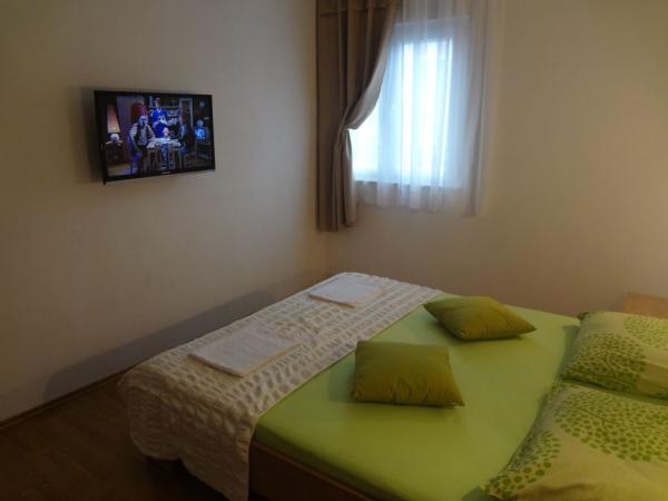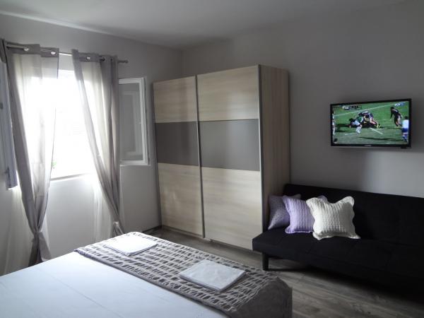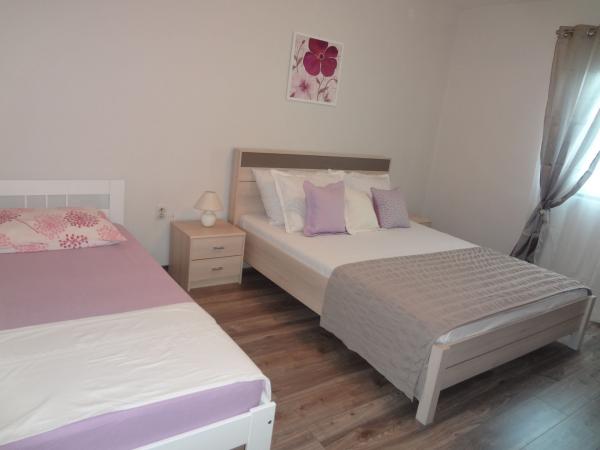 Ofrecemos dos suites (tres estrellas). Los dos apartamentos están en el primer piso. Apartamento A3 +1 tiene dos dormitorios y un sofá cama en la sala de estar, apartamento A2 +2 tiene una habitación grande con una cama doble, una cama individual y un sofá cama. Ambos apartamentos tienen camas dobles, cocina bien equipada, nevera grande, baño, estacionamiento, aire acondicionado, ducha al aire libre, parrilla y terraza. Trogir está situado en Ciovo que está conectado con el continente. Así que eso es, básicamente, que es la isla y tierra firme al mismo tiempo. Se puede viajar sin ningún tipo de pago, a la parte continental o en cualquier otra ciudad en coche a través del puente que está abierto las 24 horas del día. De Trogir se puede ir a Trogir en coche, autobús y barco. Trogir es de 2-4 km de Trogir y Split está a sólo 27 km del complejo. Trogir es famosa por sus aguas cristalinas ya 2 km de largo playa de gravilla, Copacabana. Trogir, la naturaleza prístina original, que es muy atractivo para hacer footing.