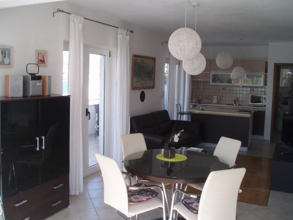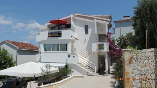 Apartamentos familia - ático Tanja, atractivo casa junto al mar, ideal para familias, grupos pequeños e individuos. Villa Tanja se encuentra en Okrug Gornji, en la isla de Ciovo, cerca del mar, en una zona tranquila, a sólo cinco minutos a pie de la playa. La playa se extiende alrededor de la bahía, con una longitud de 2 kilómetros. Nuestra villa tiene dos suites de lujo / ático (4 1) y un apartamento tipo estudio (2 0). En la planta baja hay una zona de barbacoa grande con que sirve platos y hablar para 12 personas. En frente de la casa de estacionamiento.