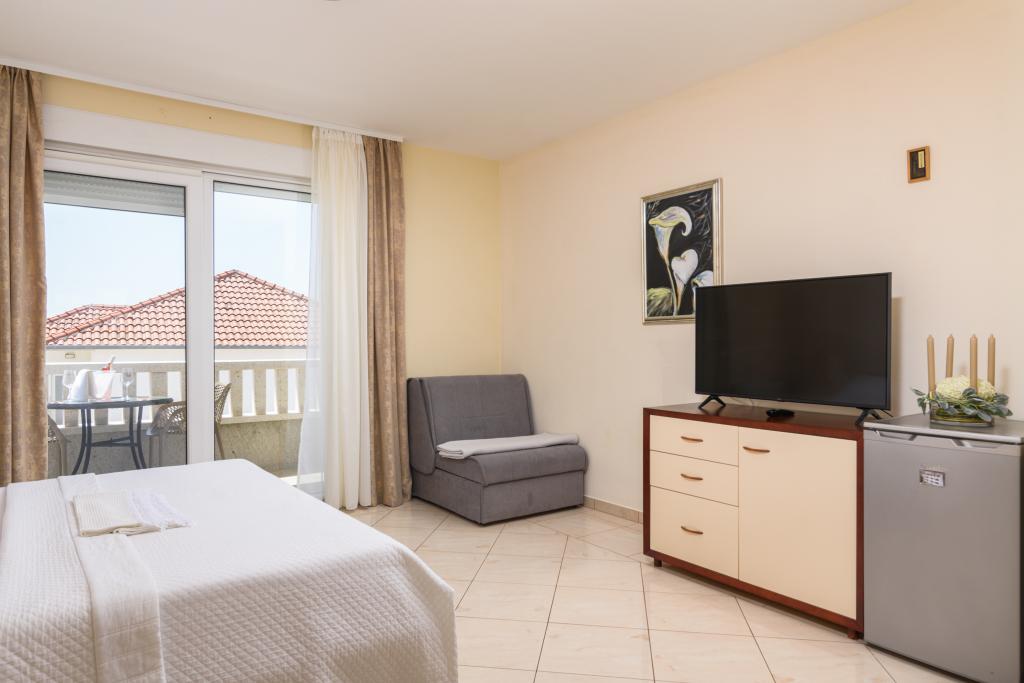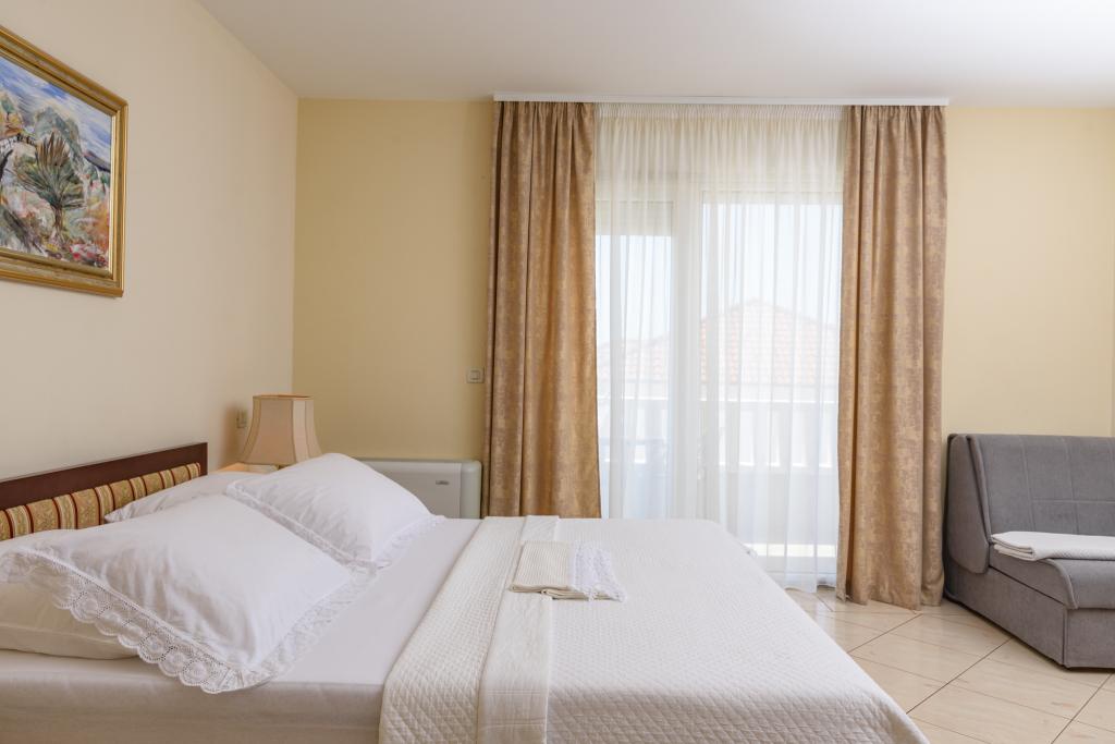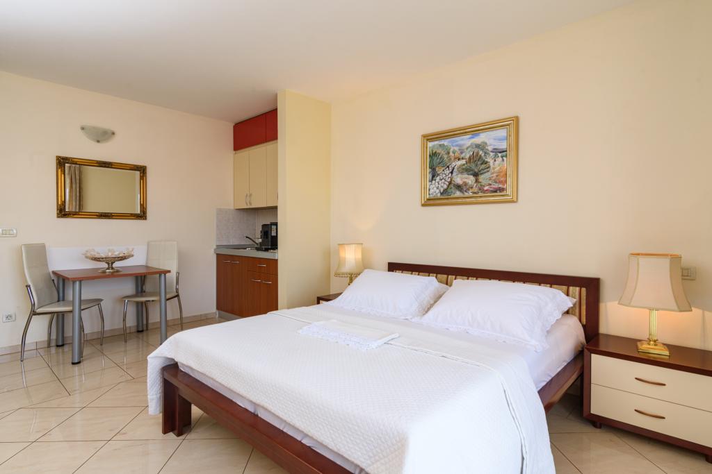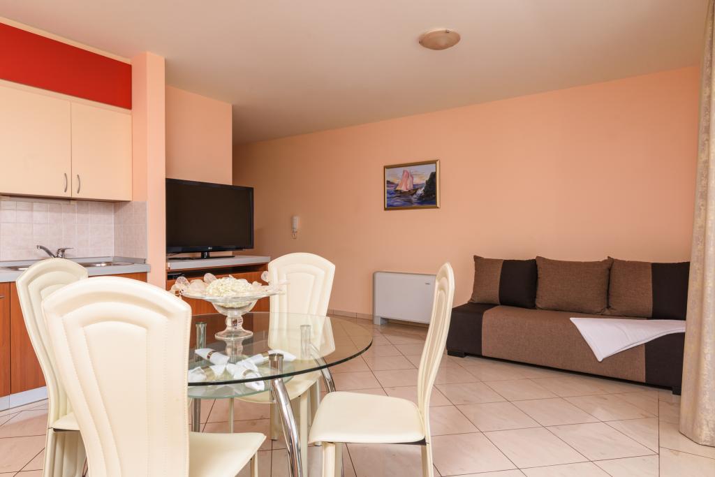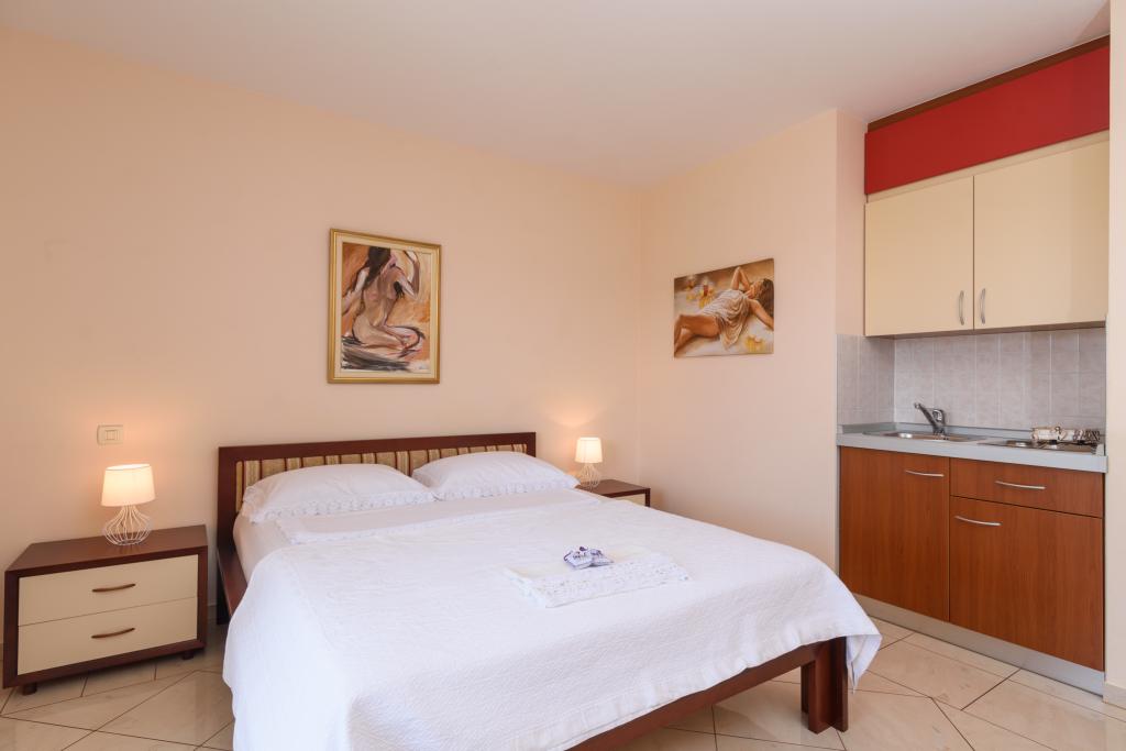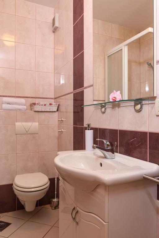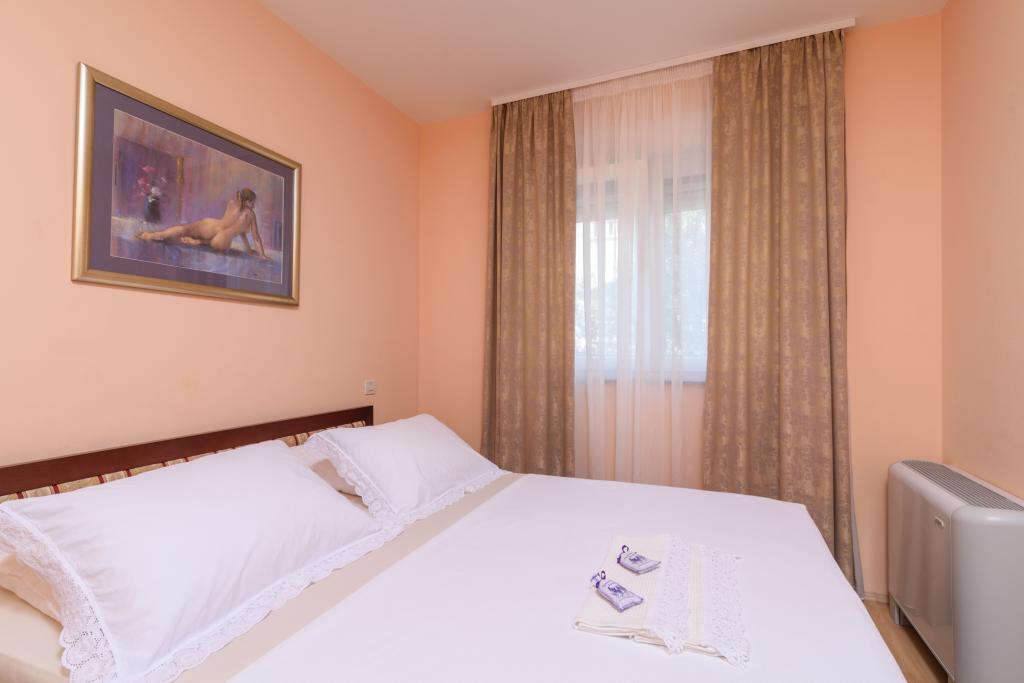 Tasa turistica está incluida en el precio.Apartamento A2 de tipo 2 (51m2) - Gran sala de estar con cocina y una cama para dos personas, un dormitorio doble, baño y terraza (12m2). Apartamento tipo apartamento / estudio A2 1 (30m2) - sala de estar con cocina, cama de matrimonio, sofá razvalčenje cama individual, baño y balcón (6,5m2). Apartamento tipo apartamento / estudio A2 (26m2) - salón con cocina, cama doble, baño y balcón (6,5m2) que viven. Todos nuestros clientes pueden utilizar una parrilla con un horno de madera situada en el jardín y disfrutar del almuerzo y cenas a las últimas horas en total privacidad. Para todos los huéspedes es un frente prakig privada de la casa.