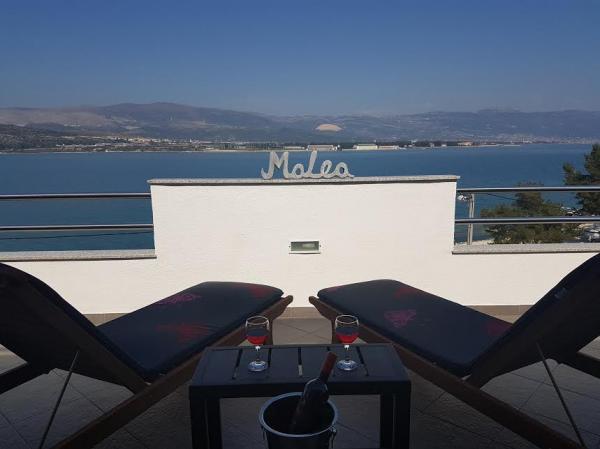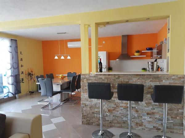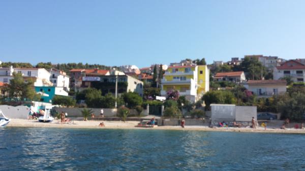 Los apartamentos están situados en la isla de Ciovo, situado en un lugar tranquilo Okrug Gornji, en la playa con vistas al mar. Los apartamentos, recientemente renovadas y modernas están totalmente equipados con cocina, TV vía satélite y aire acondicionado, conexión Wi-Fi a Internet. Apartment1 de lujo (2 2) se encuentra en el segundo piso de la casa y la zona es de 65m2 con una terraza de 35m2. Esta enorme terraza será un lugar para unas memorables y únicos recuerdos y los placeres de tomar el sol y relajarse en una tumbona y relajarse en el jacuzzi al aire libre. con vistas al mar. Suite de lujo consta de un dormitorio, cuarto de baño y una gran sala de estar con cocina. Es completamente nuevo amueblado con todos los electrodomésticos. Apartamento no. 2 y NO. 3 (2 de 2) están situadas en la 2ª planta, pero en el otro lado de la casa. Los dos apartamentos son de tamaño aproximadamente 35 m2, tiene un dormitorio, baño, cocina, sala de estar con sofá-cama para dos personas, una terraza de 5m2 con vistas al mar. Cuentan con aire acondicionado, barbacoa y aparcamiento. Los apartamentos son pequeñas a 2 km de la ciudad de Trogir.