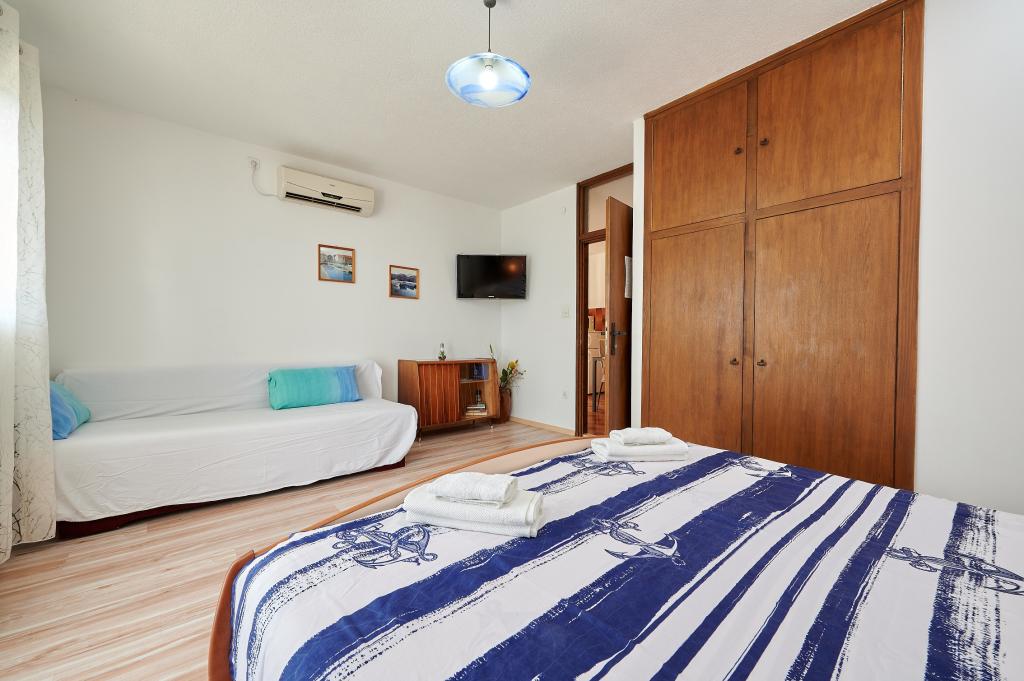 A2 + 1, A4 Los apartamentos están bien equipados y todo en ellos. La terraza ofrece unas vistas maravillosas. Tiene su propio aparcamiento. También puede asar en el patio. La zona es tranquila y pacífica. La playa está muy cerca y no hay mucha gente. Dado que la isla tiene enchufe siempre no es digno de sentarse en el coche. El casco antiguo está a sólo 5 minutos a pie. El dueño es muy agradable y servicial.
