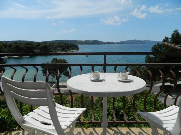 Totalmente amueblado apartamento en una zona tranquila de la isla de Ciovo, Trogir. Están situados junto al mar y la playa central. La instalación se encuentra a 5 minutos a pie del centro de la ciudad de Trogir.
